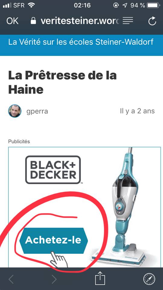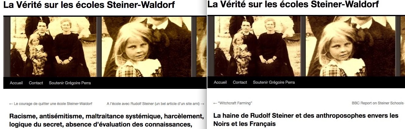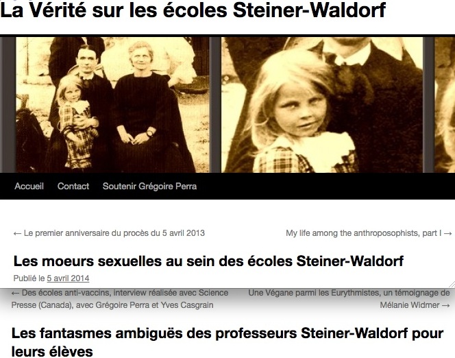 Il y en a un autre, un soi-disant expert des abus sexuels dans les Ă©coles Steiner Waldorf ! mais câest la succursale du blog Ă blagues de GrĂ©goire Perra. Les infos qu’il donne sont tout bonnement fausses.