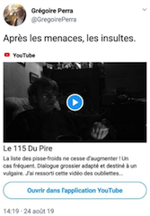 Je sais mĂȘme pas par oĂč commencer ce nouveau billet de blog, le temps de rĂ©colter des infos aussi. Bah oui, Ă la diffĂ©rence de ce type et ses copains, âje suis seulâ!?. Mieux vaut ĂȘtre seul que mal accompagnĂ©. Mais lĂ , ça devient sĂ©rieux. Voila ce que GrĂ©goire P dĂ©clenche au nom de je ne sais quoi : la haine, lâennui, la bĂȘtise sans nom, lâinfĂąme, la folie ou toutes ces forces sombres Ă la fois.