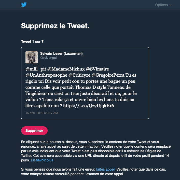 Ah oui et les copies dâĂ©crans câest lâambiance actuel et lâopinion du zozo : https://twitter.com/HumainModere/status/1199651608986038273