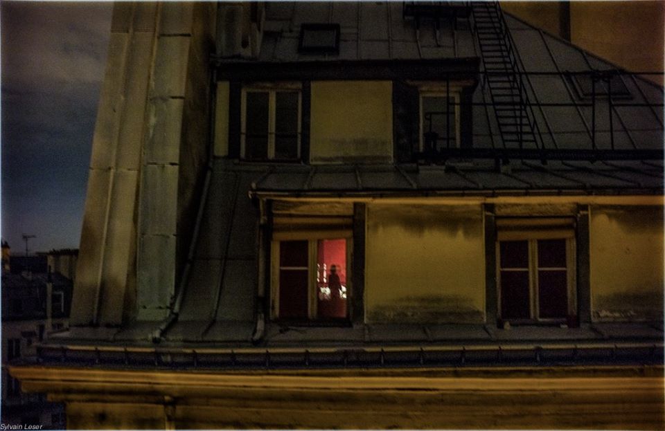Le truc Ă©trange sur cette image c’est que la personne en face n’est en fait que le reflet de ma pomme en train de prendre en photo cet immeuble parisien, un soir de pluie…