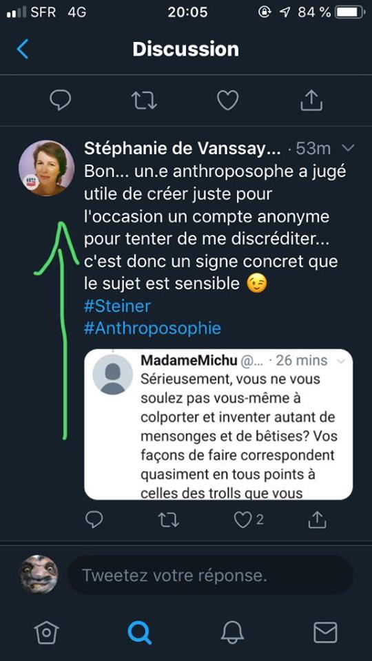 đ – « Aujourdâhui cette dame cherche Ă ostraciser les Ă©coles #Waldorf et lâ#anthroposophie. Elle ne sait mĂȘme pas de quoi elle parle… câest triste… »