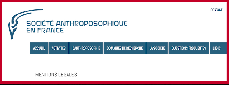 Je viens de tomber la dessus: https://anthroposophie.fr/mentions-legales/ une juste rĂ©action de la part de la sociĂ©tĂ© anthroposophique qui se moque un peu de vous trĂšs gentiment et D.ieu sait que vous le mĂ©riter. Vos maniĂšres sont noires. Je les trouve d’ailleurs plutĂŽt sympathique et rempli d’humour Ă votre Ă©gard ces braves gens.