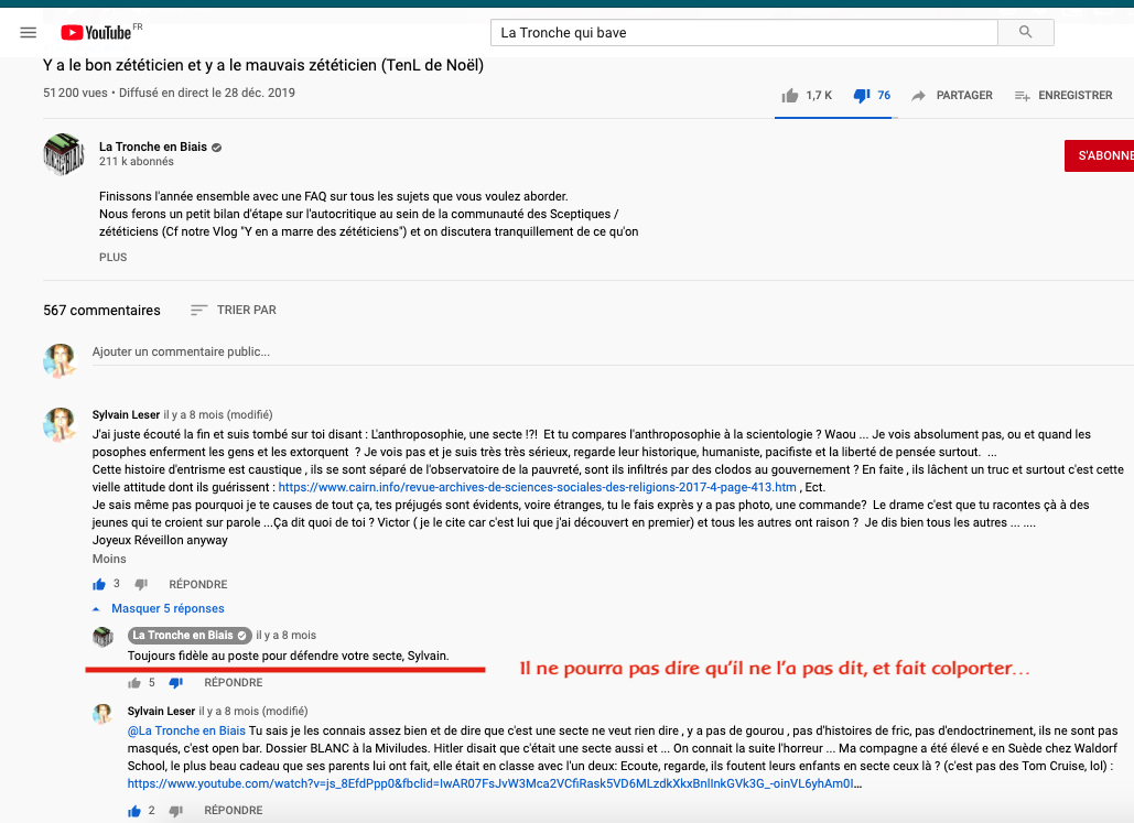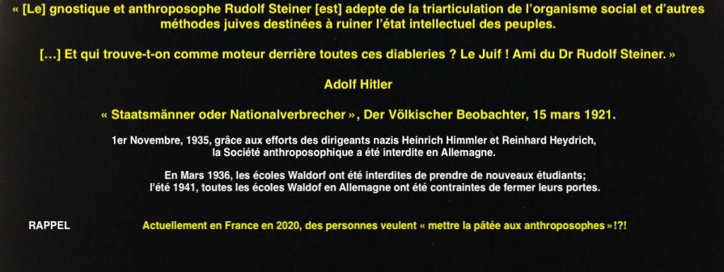 Ăa fait 3 semaines quâil retweet comme un malade des trucs concernant les nazis, il adore ça. Essayer de faire passer les anthroposophes pour des nazis câest son grand truc.
