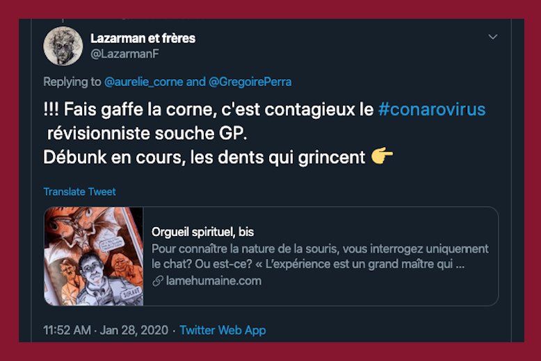 Et la liste d’abrutis fini au p…, s’allonge: https://twitter.com/GregoirePerra/status/1228114391771631616