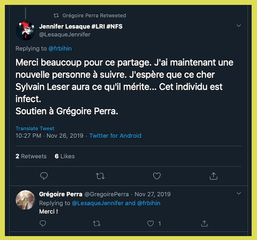 Les copains de GPerra qui aime sa publication, que j’ai croisĂ© sur Twitter et qui sont des porcs sur le rĂ©seau et sans doute ailleurs: