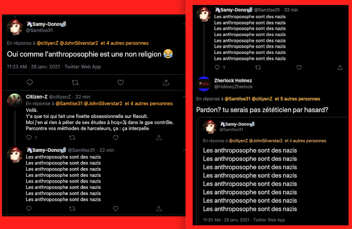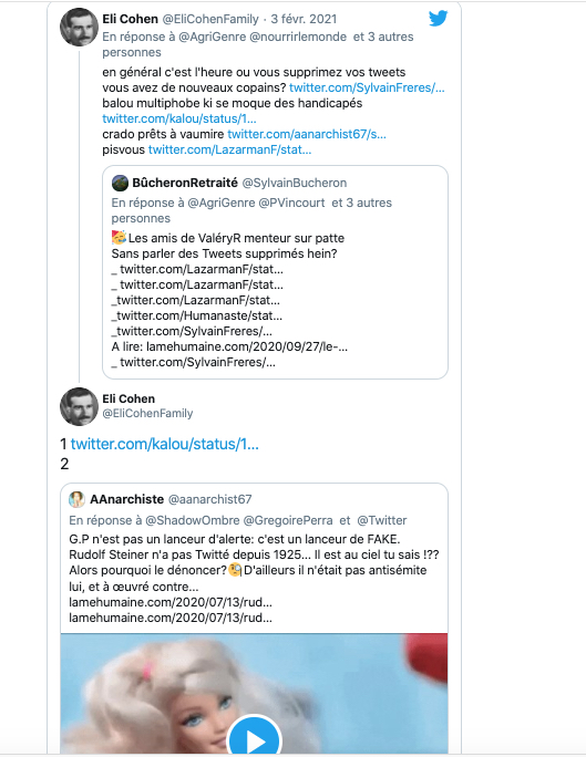 https://twitter.com/SylvainFreres/status/1342925399886622721?s=20 https://twitter.com/ArchibaldMcEnd/status/1351480332856356864?s=20 & https://twitter.com/HolmezZherlock/status/1325445269446647810?s=20 des costauds de la haine, bien bien facho.