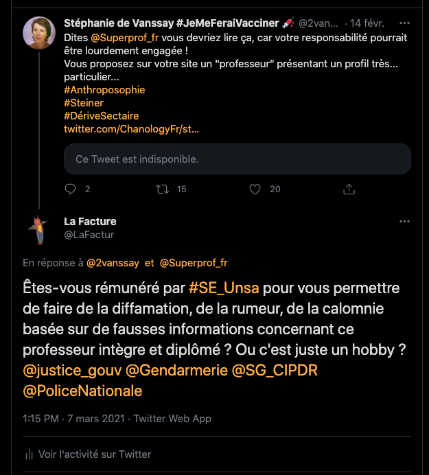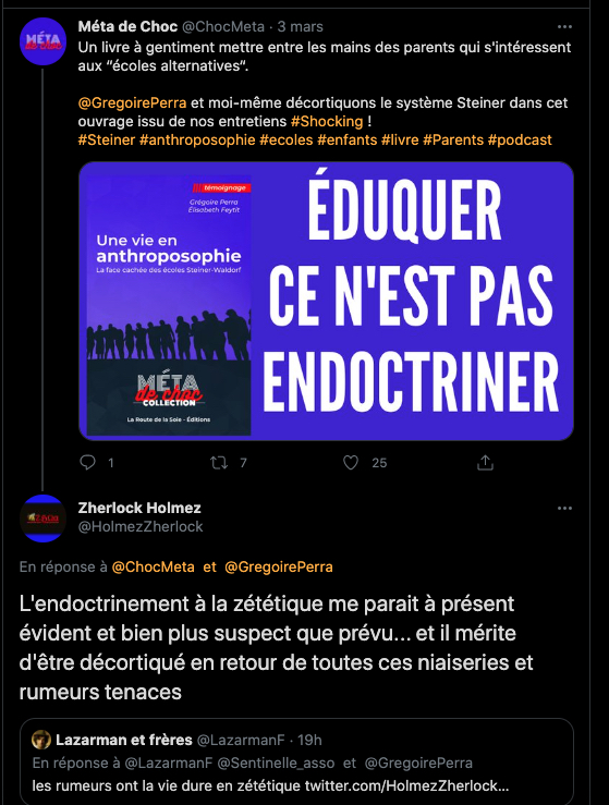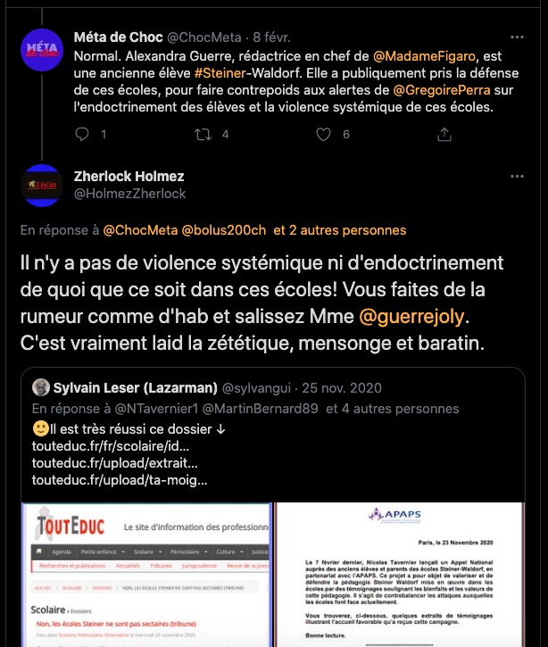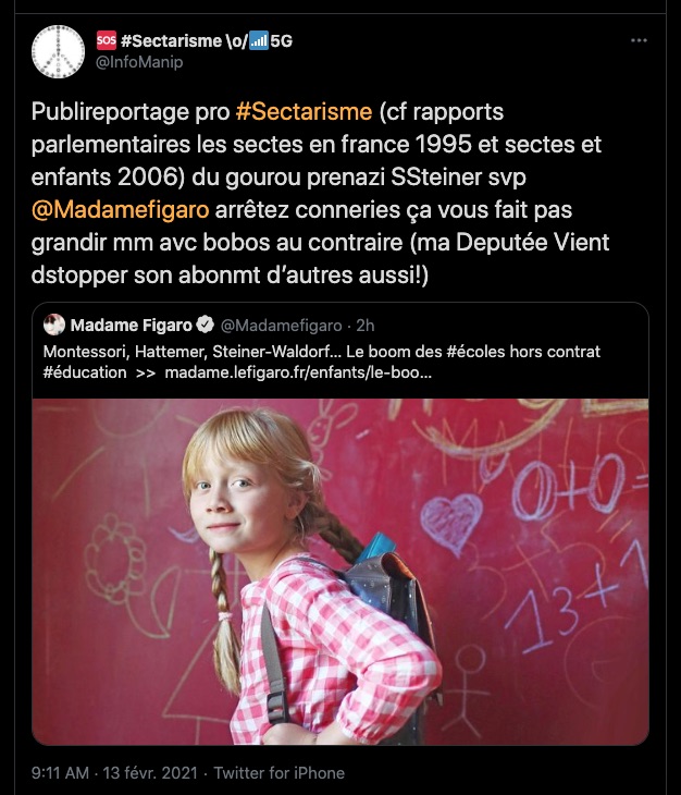 https://twitter.com/LazarmanF/status/1367438572681383939?s=20 🙂 Bonjour, vous êtes trollé par m’dème calomnie rumeur et diffamation @2vanssay actuellement, devriez masquer son commentaire et la bloquer https://t.co/mD437qCt7c Ou lui répondre cela: https://t.co/SNH785GV62 A lire donc: https://www.femmexpat.com/dossiers/education/steiner-waldorf-levaluation-par-la-qualite-2/