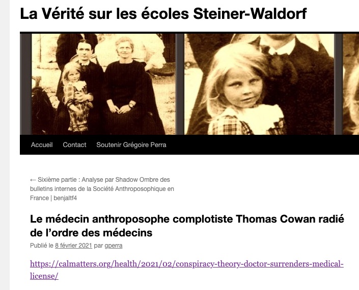 Le docteur Thomas Cowan n’est pas membre de la Société anthroposophique aux USA ni ailleurs ;