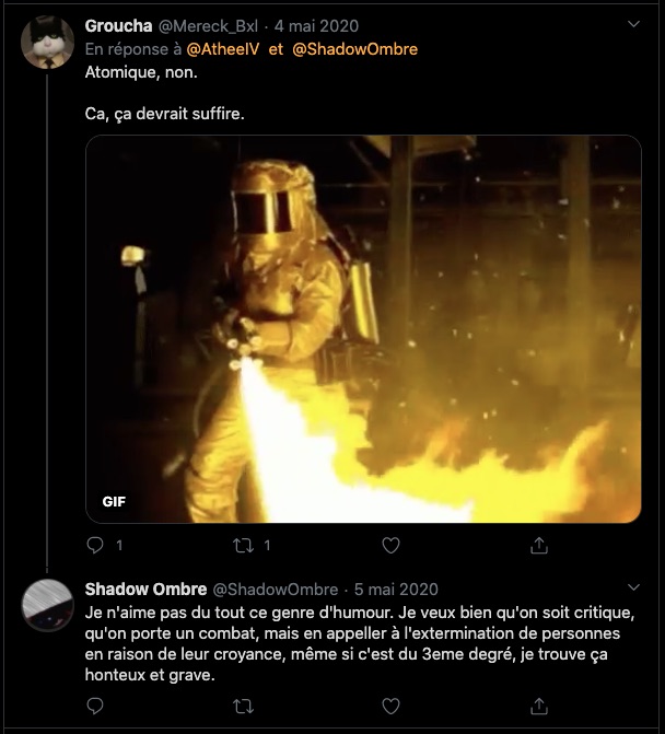 Leur spécialité est l’inversion de la vérité, de l’Histoire aussi. Pour ce faire, ils trichent, ils mentent, virent vos commentaires, vous censurent et vous accusent de tous les maux en permanence. Ils se disent laïcs ou parfois croyants mais leurs images et leur mots sont remplis de haine, un lance-flammes par là, des torches par ci et au chalumeau pour varier.