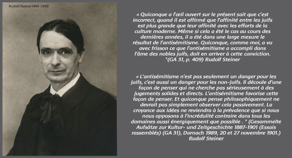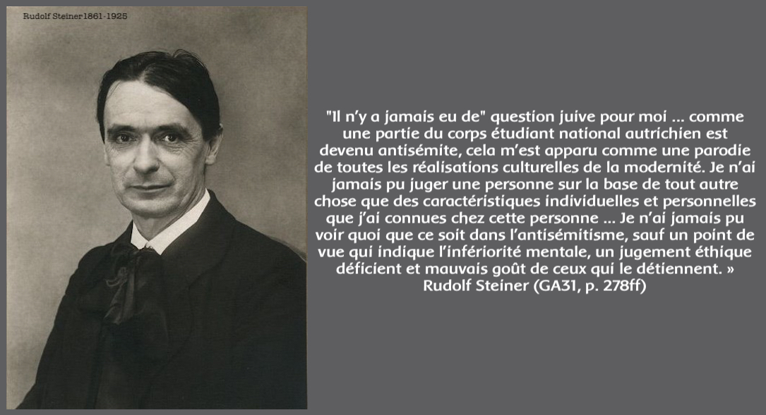 Hé c’est reparti pour de l’incitation pure et dure, à du racisme envers les anthroposophes ↓ eh oui Steiner, quoi qu’il ait dit, est décédé en 1925… et même s’il n’a pas été jugé raciste dans ses propos, il est tout de même mort depuis bientôt un siècle.