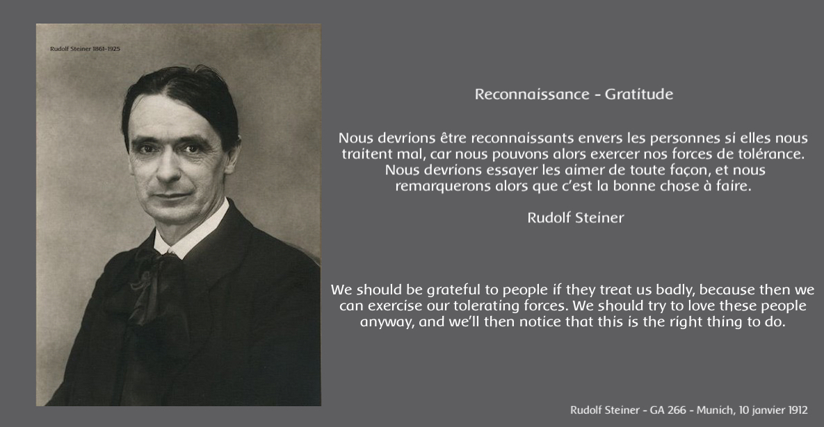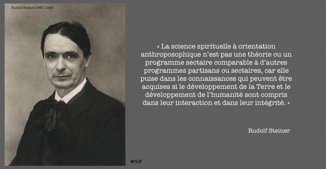 Ma compagne y a, elle, été. Elle en garde un souvenir merveilleux. Elle n’a jamais étudié l’anthroposophie pendant sa scolarité ni même après comme je l’ai fait, en auto-didacte (durant une période d’une dizaine d’années de lecture). Je ne me sens pas plus « Steinerien » que « VictorHugorien », « LevyStraussien » ou « SaintExupérien », ni même « CGJungrien » ou « Zolarien » ou encore « Camusrien ». Je suis simplement juste ravi d’avoir découvert ce formidable personnage. D’ailleurs, comme vous pouvez le voir sur ma biographie, l’école, j’y suis pas trop allé et j’ai quitté les bancs scolaires à l’âge de 13 ans.