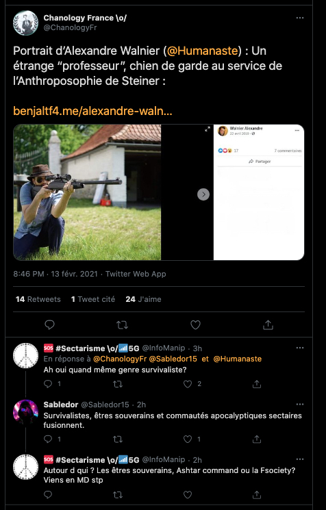 Ainsi faire passer l’anthroposophie et les antroposophes pour des « sectaires appartenant à une ou des sectes obscures et racistes » en insistant bien sur le sujet tout en y ajoutant « des accointances avec les nazis et les pédos-criminels » est, semblerait-il, un de leur élément de langage utilisé comme un atout majeur et récurent dont je constate l’usage sur les réseaux.
