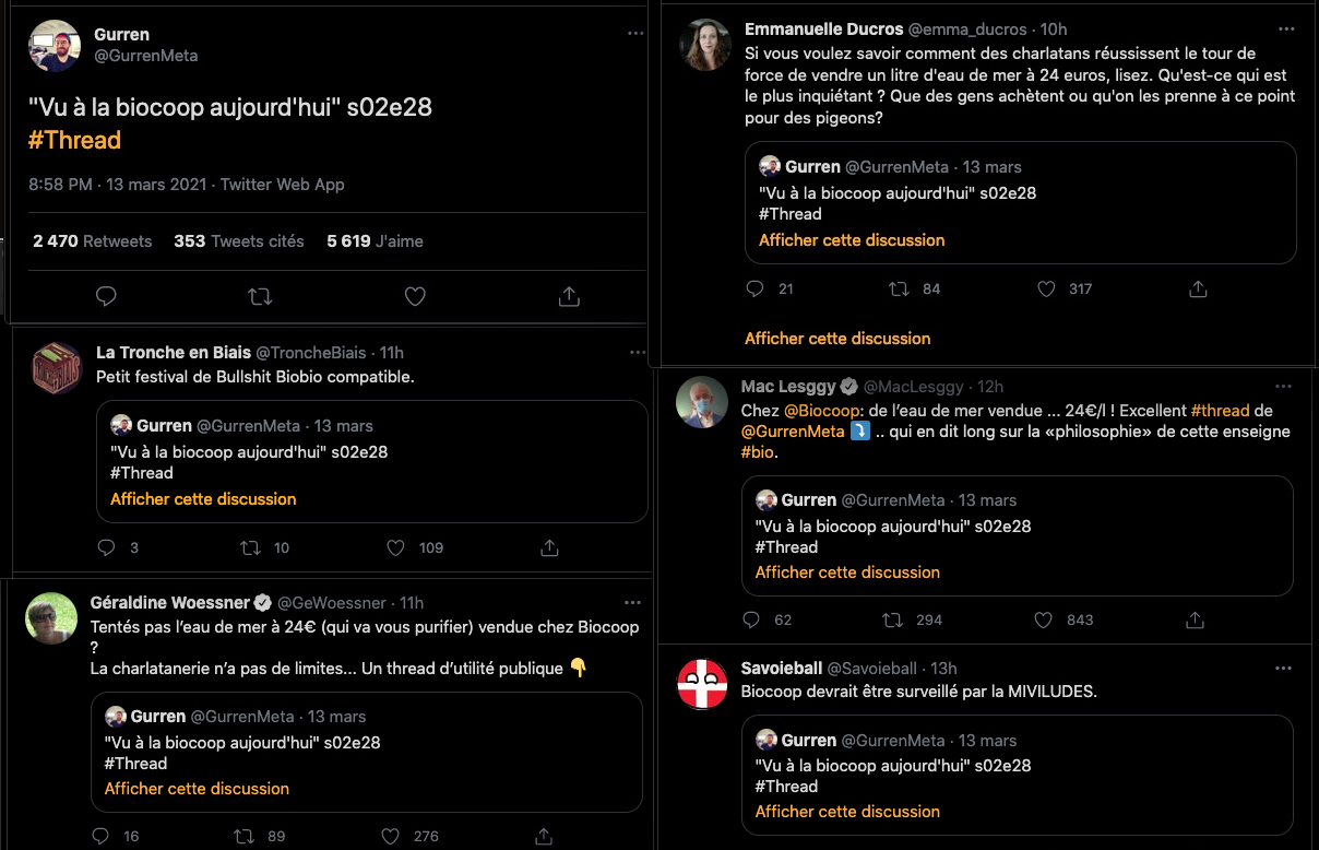 Petite attaque dominicale, « secte=bio » les posophes un peu taxé de, …et consorts, menée par les astroturfeurs de la zététique, ils s’en prennent à biocoop, bon, quelques chefs de file retweet un thread idiot, quelques éclaboussures au passage…