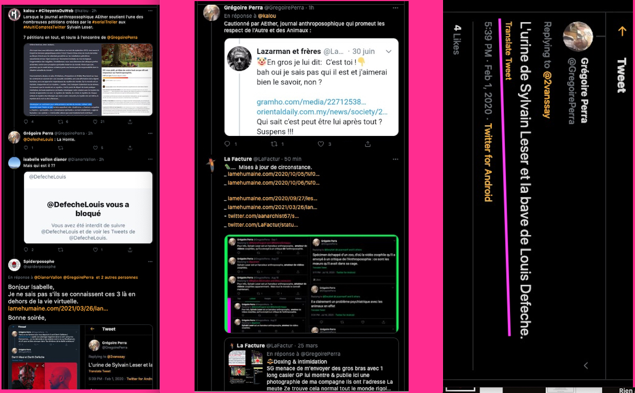 Doxing & intimidation StanG menace de m’envoyer des gros bras avec 1 long casier. GP lui montre & publie ici une photographie de ma compagne, Ils ont l’adresse. La meute Ze trouve cela normal, tout le monde rigole & me signale. Fier d’être CitoyensDuWeb, merci Libé...