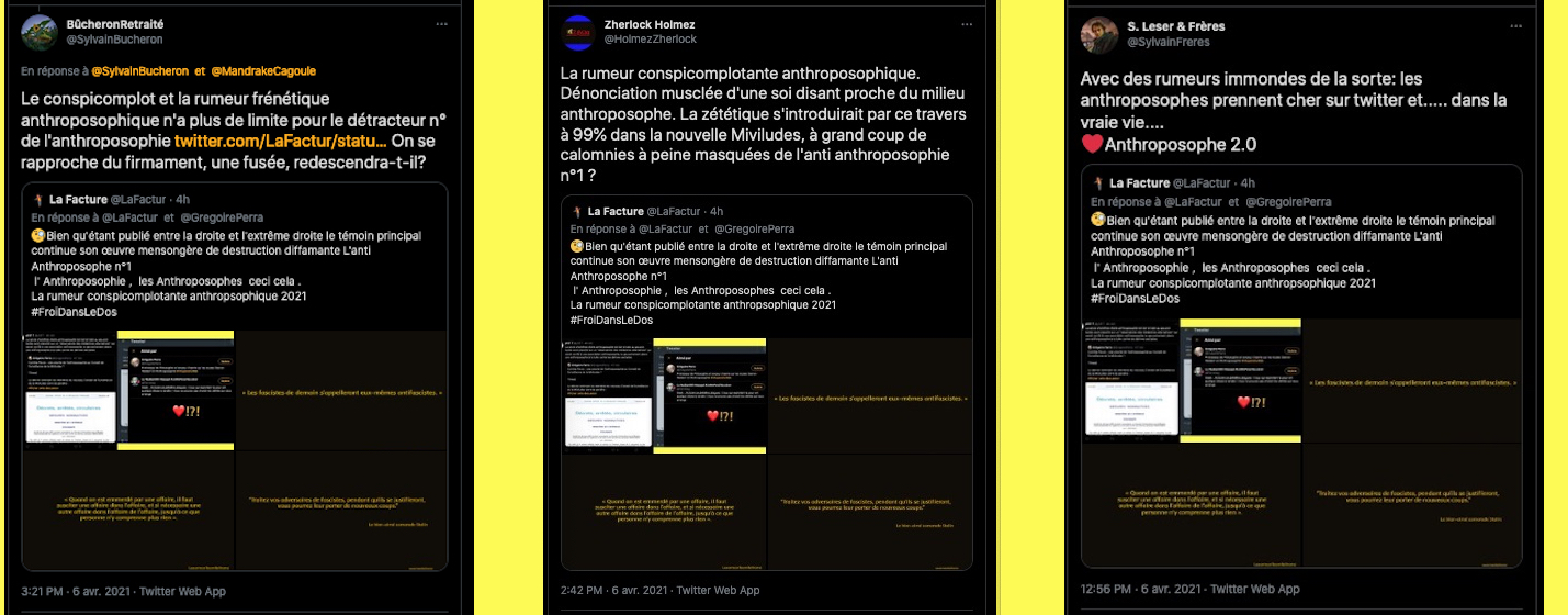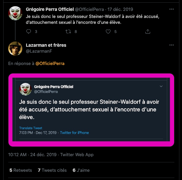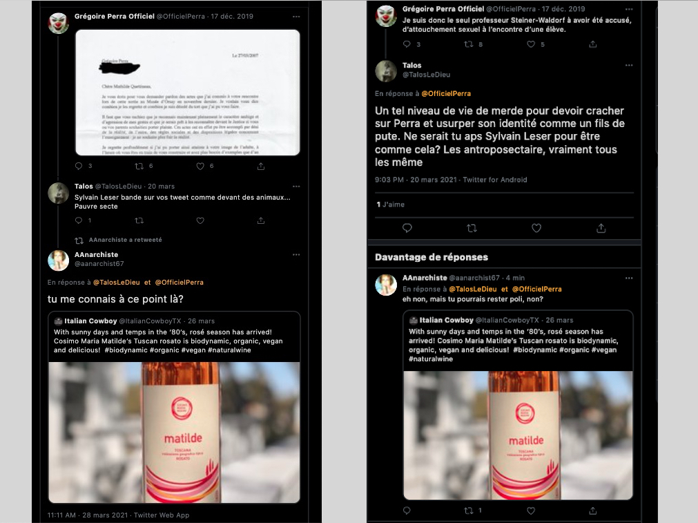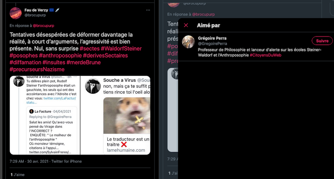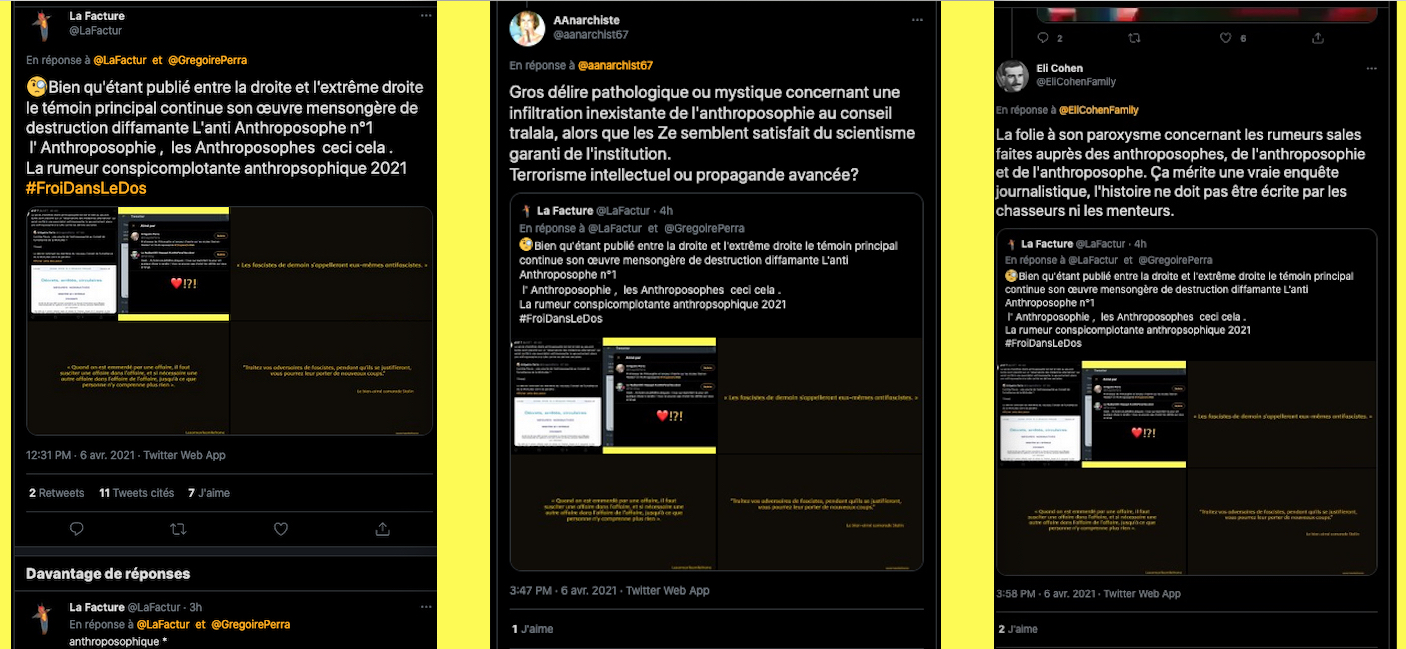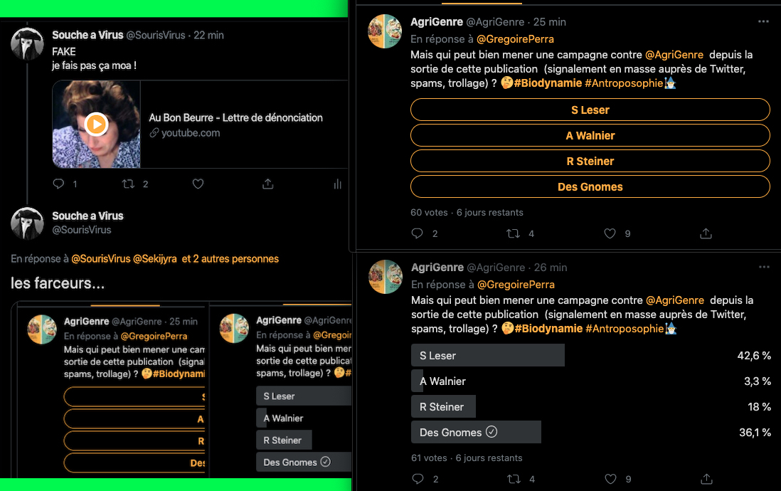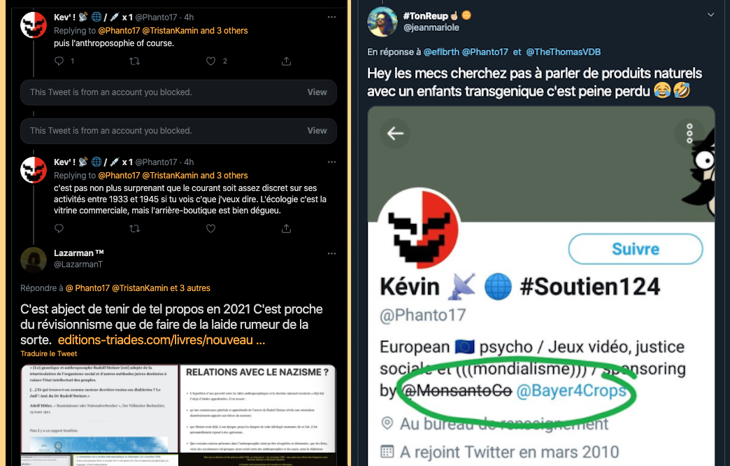 Tiens la bande à Perra qui s’en prend à Biocoop et à la pédagogie Steiner Waldorf comme d’hab. Mais le niveau Ze là est très faible, des trollos minables, juste de la diffamation habituelle sans trop d’importance ⬇︎ si ce n’est que c’est quotidien.