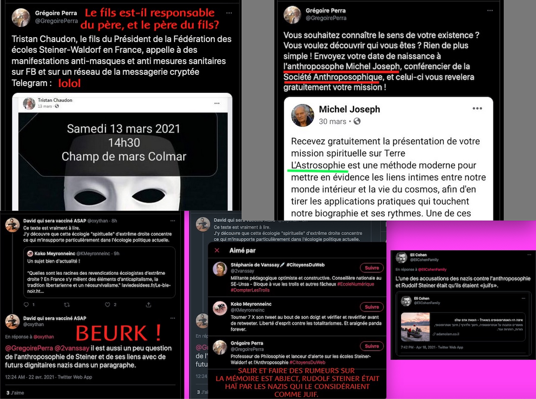 🇫🇷Par vagues successives, l’anthroposophie et les initiatives qui s’en inspirent sont l’objet d’attaques qui sont généreusement relayées par certains médias.Le principal instigateur de ces discours mal intentionnés et en grande partie mensongers, Grégoire Perra, alimente outrageusement les rumeurs les plus perverses. – https://www.anthroposophie.fr/actualites/communique-presse-octobre-2019 & https://www.pedagogie-waldorf.fr/2019/05/15/gregoire-perra/ & et ses copains: https://www.pedagogie-waldorf.fr/2021/01/12/slate-steiner-waldorf/ & https://www.pedagogie-waldorf.fr/2019/10/10/les-ecoles-waldorf-ne-sont-pas-epargnees/ … https://www.anthroposophie.fr/search?q=communiqu%C3%A9…