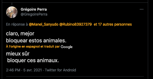 Grégoire Perra, fier d’être un signataire de la tribune de Libération « La lutte contre la désinformation en ligne est en danger« , #CitoyenDuWeb, s’est livré ce soir à un acte d’intimidation me concernant en diffusant une photographie de ma compagne sur Twitter, en invitant sans doute à la saigner?