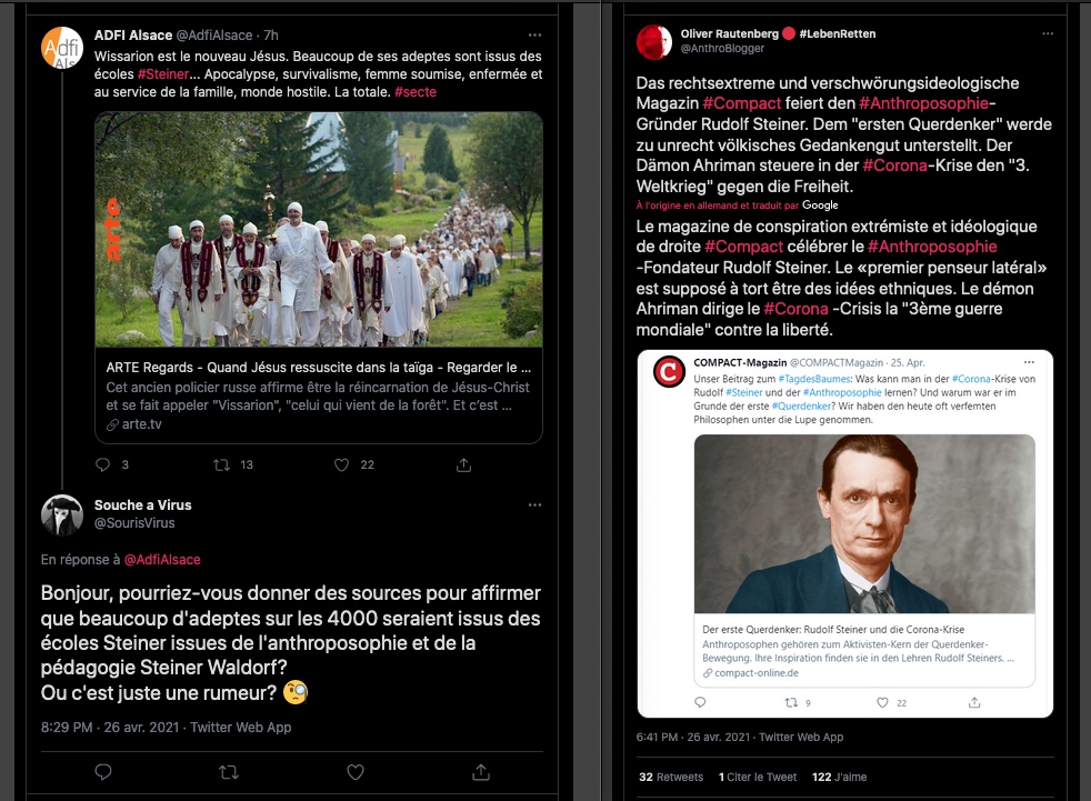 Oui ,vous avez raison, il faut que tout le monde le sache : « L’antroposophie est une secte. L’antroposophie manipule (dont les enfants). L’antroposophie est une pseudo-science ésotérique. L’antroposophie est un marché qui rapporte. » dr. Yann Duroc… https://twitter.com/DurocYann/status/1294782578059288576?s=20