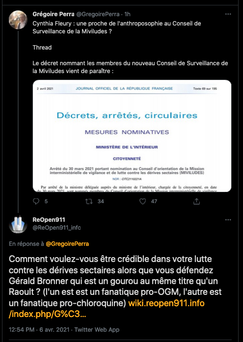 Il est infernal ce petit bonhomme… il saute sur tout ce qui bouge… Nommez le à la Miviludes qu’on en parle plus… et une légion d’honneur en plus… comme Bronner… mais qu’en pense Gerald d’ailleurs?