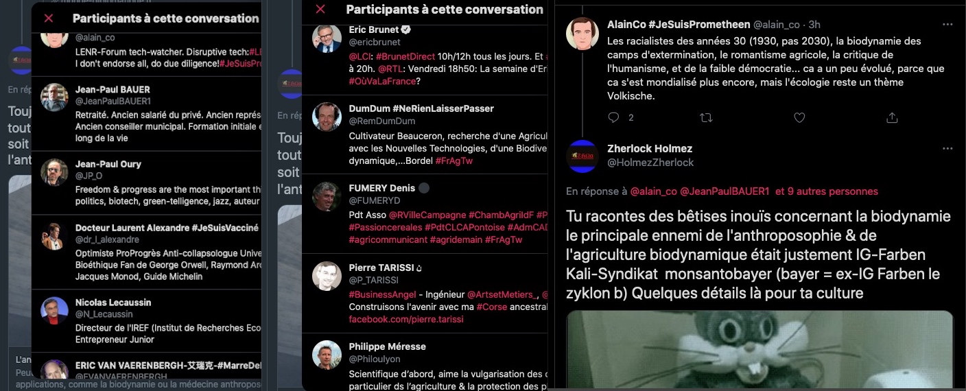 Lorsque je vois ce genre de Tweet ou un fan de Laurent Alexandre, à la réputation d’Eugéniste, où des Ze sont, où un cadre de chez Bayer est, je suis bien content d’avoir fait l’article suivant. Les mecs tentent de reprocher à l’anthroposophie des accointances avec les nazis, genre bionazi, alors qu’eux en sont le pur produit. Les autres je ne connais pas, j’ai pas le temps de renifler les fesses à tout le monde… Mais bon, on a tous entendu un peu parler des négationnistes du climat!?? : https://twitter.com/HolmezZherlock/status/1385608377619865601?s=20