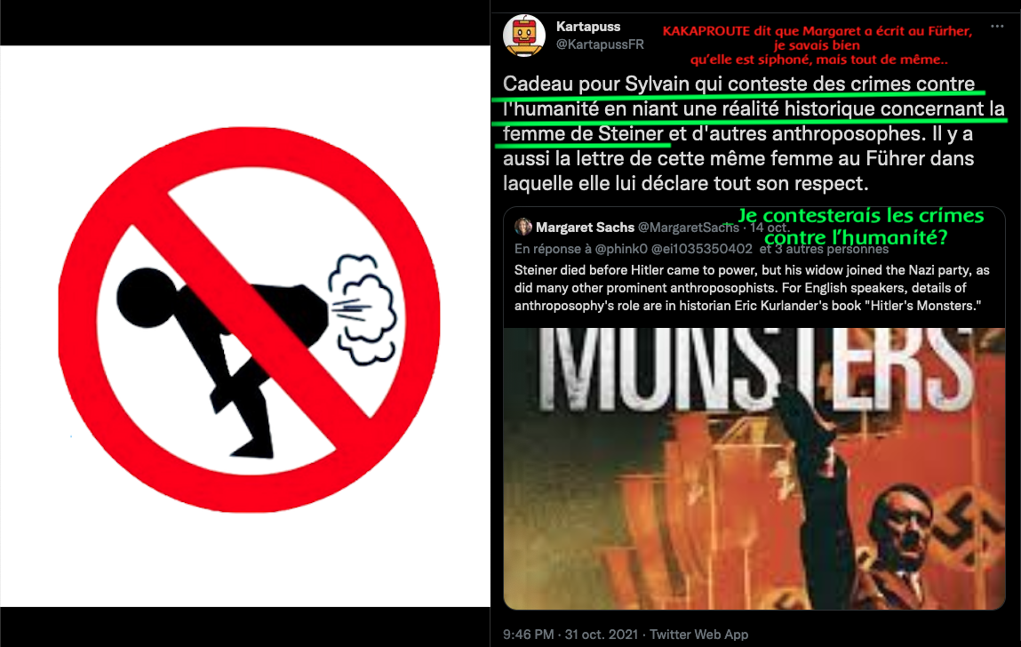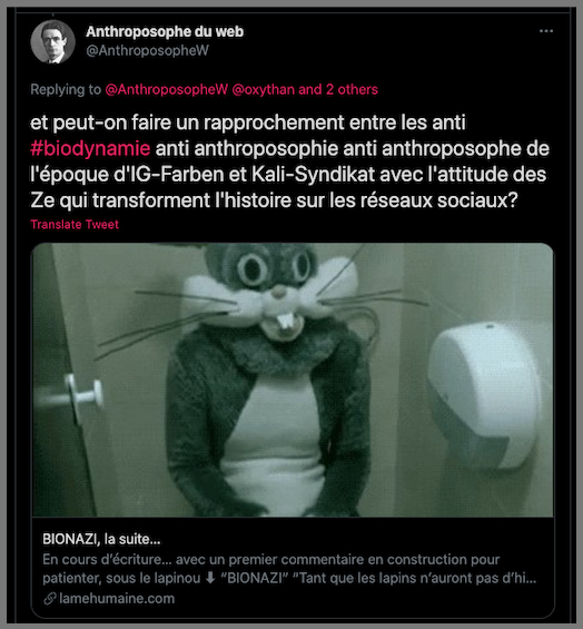 Lire tout ça ici : https://lamehumaine.com/2021/11/24/les-zanti-anthroposophie-sont-abjects-2/ & https://lamehumaine.com/2021/11/01/chasse-aux-anthroposophes-generation-collabos/