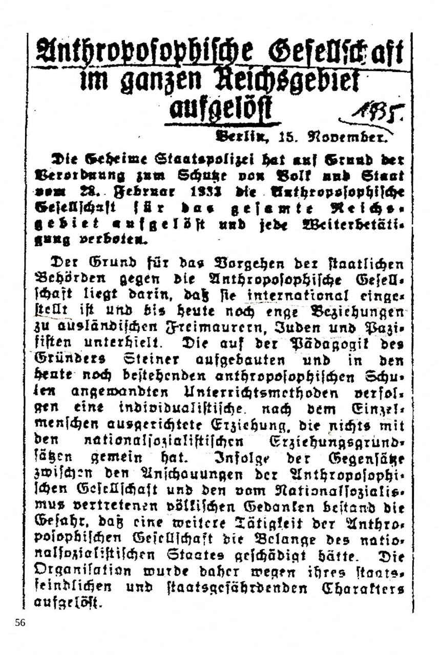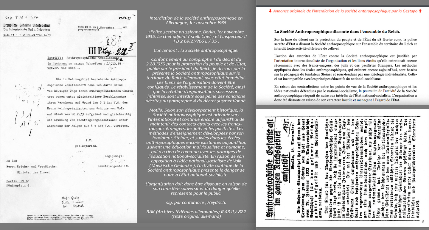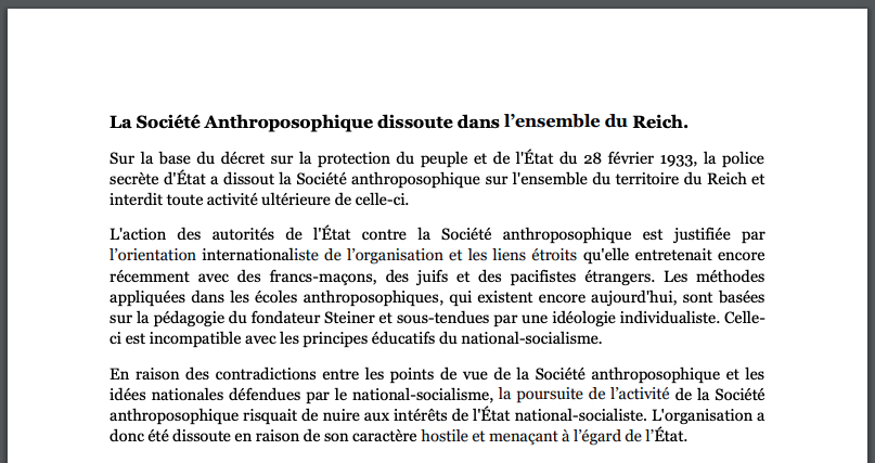 âŹïž Annonce originale de l’interdiction de la sociĂ©tĂ© anthroposophique par la Gestapo âŹïž