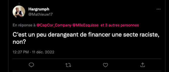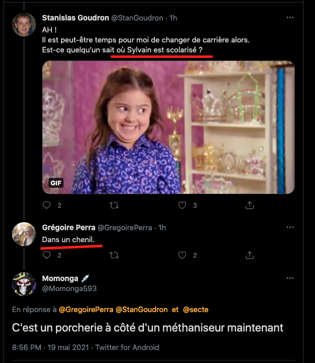 Ils font souvent appel au retraitĂ© YanDucon qui doit pas ĂȘtre contre un petit bifton. Rappel„ https://twitter.com/SourisVirus/status/1375844833810468868?s=20 & https://twitter.com/SourisVirus/status/1375853404841521155?s=20 & https://twitter.com/SourisVirus/status/1375844833810468868?s=20 & https://twitter.com/LazarmanT/status/1394928540798304261?s=20 & https://twitter.com/SylvainFreres/status/1394978996576718851?s=20 & https://twitter.com/SylvainFreres/status/1394978333612466177?s=20 & https://twitter.com/LazarmanT/status/1395025745995501580?s=20 & https://twitter.com/LazarmanT/status/1395026950222225413?s=20 & https://twitter.com/LazarmanT/status/1395028954352861194?s=20 & https://twitter.com/SylvainFreres/status/1395024345496440835?s=20 & https://twitter.com/SylvainFreres/status/1395027446852984838?s=20 & https://twitter.com/SylvainFreres/status/1395044051368521731?s=20 & https://twitter.com/SylvainFreres/status/1395032930880135168?s=20 & https://twitter.com/SylvainFreres/status/1395031752326922240?s=20 & https://twitter.com/SylvainFreres/status/1395030973763538945?s=20 & https://twitter.com/SylvainFreres/status/1395028134450302979?s=20 & https://twitter.com/SylvainFreres/status/1395027446852984838?s=20 & https://twitter.com/SylvainFreres/status/1395024345496440835?s=20 & Un peu de racisme par lĂ chez pic noir: https://twitter.com/LazarmanT/status/1395053051841503239?s=20 & https://twitter.com/LazarmanT/status/1395052001742970887?s=20 & elle elle a dĂ©jĂ vu ce tweet et elle continue, c’est tojours la mĂȘme rumeur infecte : https://twitter.com/LazarmanT/status/1395119521346818058?s=20 & allĂ©gations de racisme: https://twitter.com/LazarmanT/status/1395130399907516420?s=20 & de violence : https://twitter.com/LazarmanT/status/1395128314994565122?s=20 & https://twitter.com/LazarmanT/status/1395128072697954307?s=20 & https://twitter.com/LazarmanT/status/1395126860967825411?s=20 & https://twitter.com/LazarmanT/status/1395126381269426176?s=20 & https://twitter.com/LazarmanT/status/1395126119334961154?s=20 & https://twitter.com/LazarmanT/status/1395288140072488962?s=20 & https://twitter.com/LazarmanT/status/1395285775378436096?s=20 & https://twitter.com/LazarmanT/status/1395285224087490560?s=20 & https://twitter.com/LazarmanT/status/1395282661158133762?s=20 & https://twitter.com/LazarmanT/status/1395279381728223232?s=20 ça a continuĂ© cette nuit et c’est loi d’ĂȘtre fini… etc.