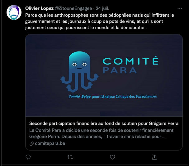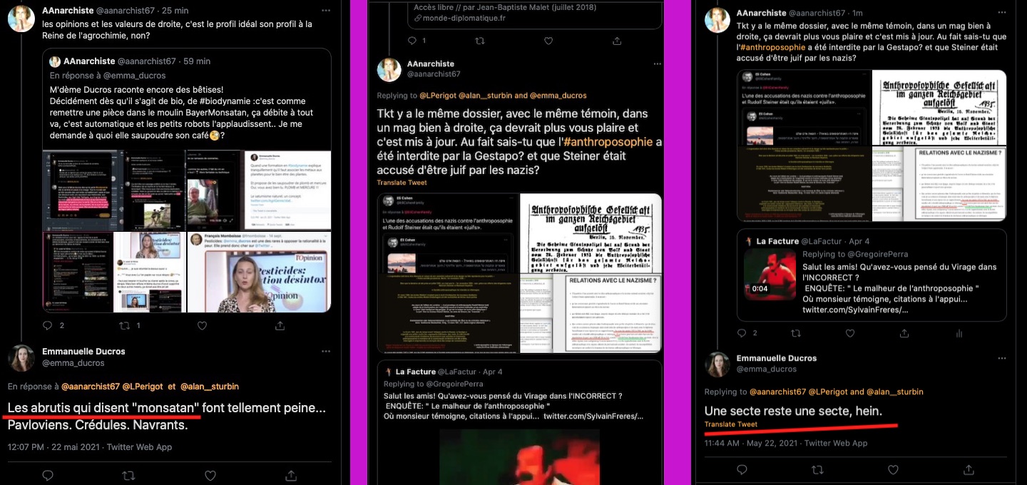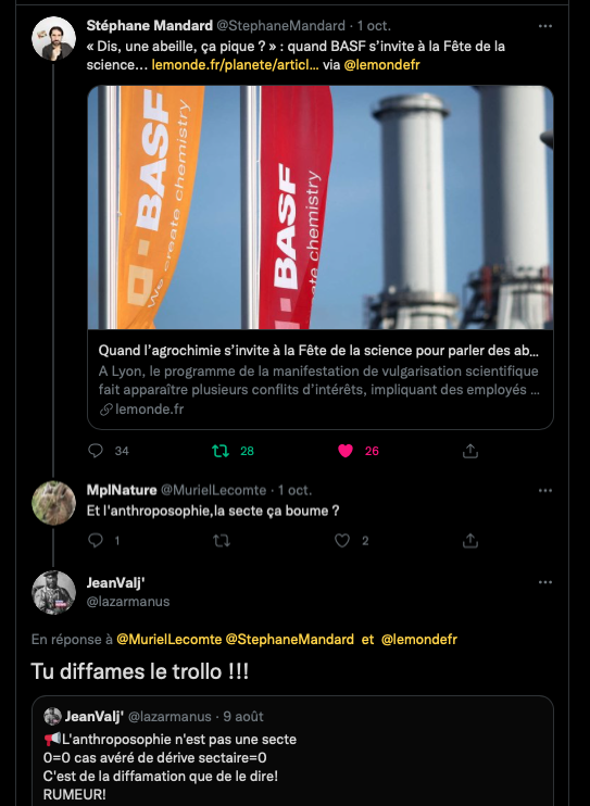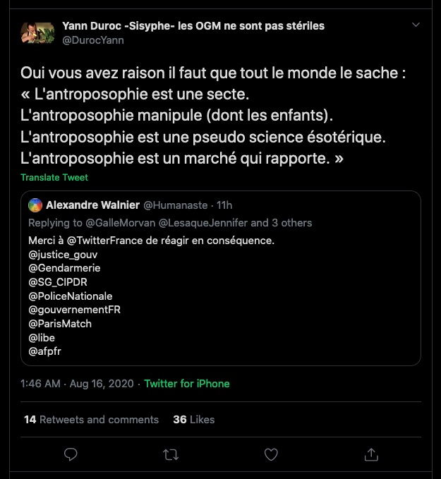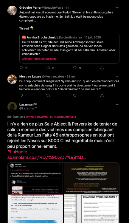 En france il y a de la marge dis donc concernant ce que lâanthroposophie, les anthropsophes se font injurier publiquement et fallacieusement #Licra _https://twitter.com/SylvainFreres/status/1487083186056216579?s=20