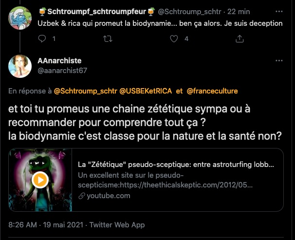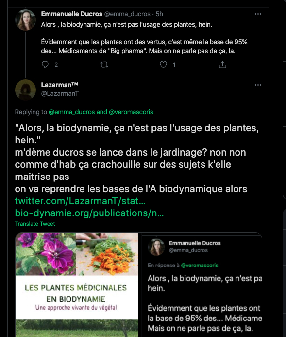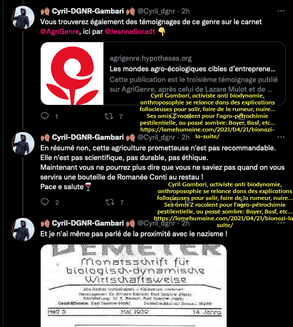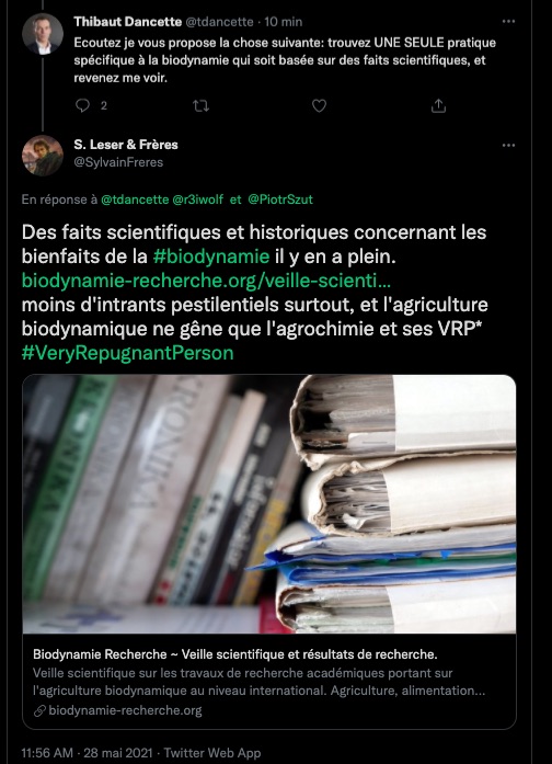 18/19 Mai 2021 Une attaque de la pseudo zĂ©tĂ©tique, musclĂ©e, astroturfing, comptes poubelles et autres s’en prennent Ă une publication sur l’agriculture biodynamique sur Twitter. Un tweet en particulier, mensonge et calomnie en cours. Qui sont-ils?
