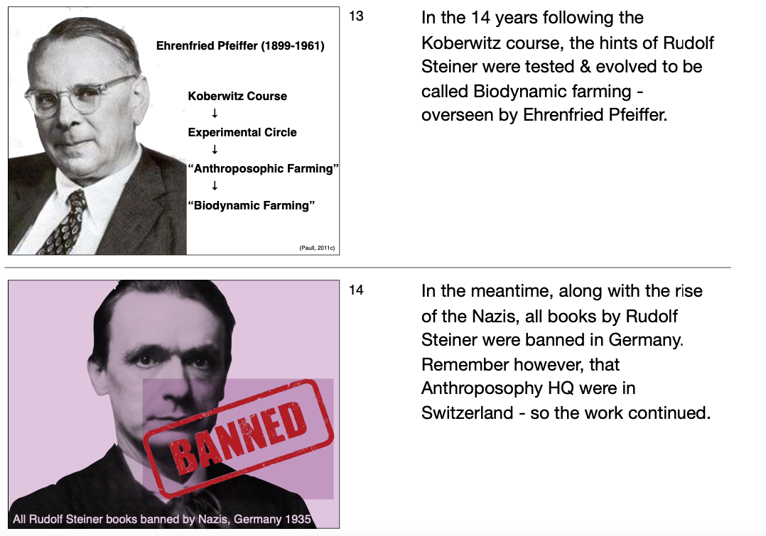 Les ennemis de lâanthroposophie et de la biodynamie existent bel et bien depuis la crĂ©ation de ces deux entitĂ©s. Jâai un peu pris le temps de lire en croix les archives scientifiques dâun chercheur dâOxford Tasmanie sur lâapparition de la biodynamie et du bio (biologique) dans le monde. Nous devons cela Ă Rudolf Steiner, et Ă un grand nombre dâautres personnages qui ont fait partie intĂ©grante de cette surprenante aventure. (Je mettrai les sources plus tard). En attendant, voici ce que jâai relevĂ© suite Ă une premiĂšre lecture non-exhaustive.