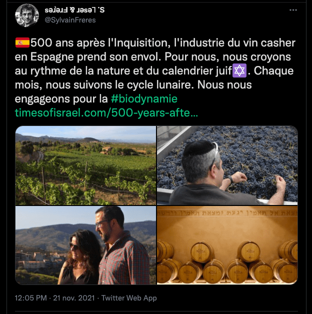 Nous nous engageons pour la biodynamie et lâĂ©cologie. https://www.jta.org/2021/11/03/global/500-years-after-the-inquisition-spain-finally-has-a-vibrant-kosher-wine-industry