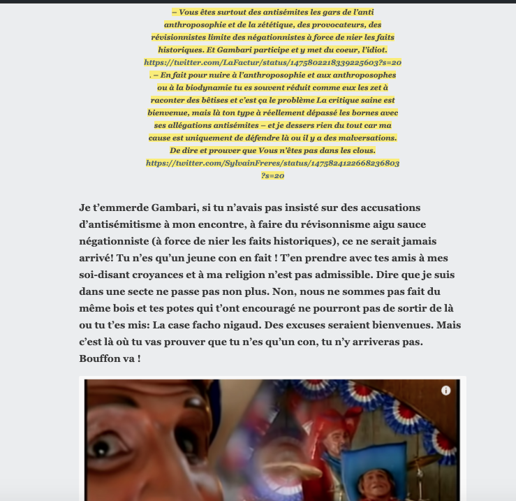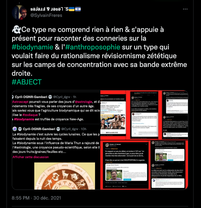Lire tout ça ici : https://lamehumaine.com/2021/11/24/les-zanti-anthroposophie-sont-abjects-2/ & https://lamehumaine.com/2021/11/01/chasse-aux-anthroposophes-generation-collabos/ : https://twitter.com/SylvainFreres/status/1476288190369705997?s=20