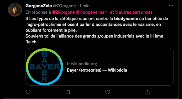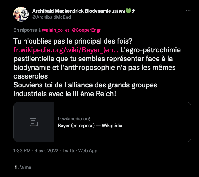 1/2 Avec Meybeck, lâactiviste haineux anti #anthroposophie #biodynamie ça devient vite immonde, ignoble, rĂ©pugnant, inadmissible, abject. Souviens toi donc de lâalliance des grands groupes industriels avec le III Ăšme Reich! #ZĂ©tĂ©tiqueGoebbelsienne