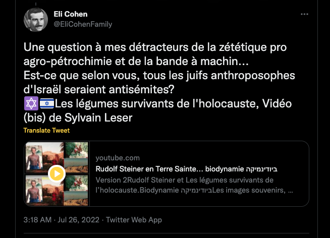 https://lamehumaine.com/2020/09/25/la-rose-blanche/ & https://lamehumaine.com/2020/07/13/rudolf-steiner-en-terre-sainte/ & https://lamehumaine.com/2020/07/13/rudolf-steiner-et-les-legumes-survivants-de-lholocauste/ & https://lamehumaine.com/2020/09/25/les-deux-marchaient-ensemble/ & https://lamehumaine.com/2020/07/13/rudolf-steiner-et-les-nazis/ & … https://twitter.com/SylvainFreres/status/1553697487663374337?s=20&t=q3VxVbK9clVxhV_RMBSsDA