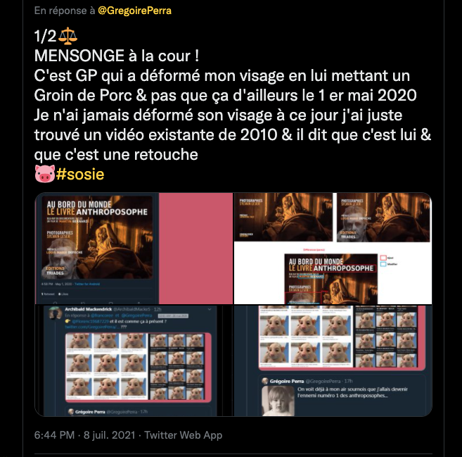 Allez voir ces quelques pages d’insultes le temps que je prĂ©pare mon prochain commentaire. La lecture n’est pas simple, s’y retrouver nĂ©cessite un peu de concentration. Tout ceci redescend du ‘lieu du crime’: Twitter d’ oĂč je capture ce qui me paraĂŻt le plus anormal: _ https://lamehumaine.com/2021/04/06/le-traducteur-est-un-traitre/ & https://lamehumaine.com/2021/03/26/lanthroposophie-et-ses-grands-detracteurs/ & https://lamehumaine.com/2020/09/27/les-empilages-recents-â/ & https://lamehumaine.com/2020/09/25/la-rose-blanche/ & https://lamehumaine.com/2020/03/08/lettre-a-mon-trollo/ & https://lamehumaine.com/2020/01/21/ma-femme-me-disait/ & https://lamehumaine.com/2020/03/16/đŠ-les-heures-sombres/ & https://lamehumaine.com/2020/09/27/mouaif/ & https://lamehumaine.com/2020/09/27/les-sectes-2-0/ & https://lamehumaine.com/2020/09/27/ca-pue-du-bec/ & https://lamehumaine.com/2020/09/27/le-retour-du-gourou-prophete/ & https://lamehumaine.com/2020/09/27/la-zuite/ & https://lamehumaine.com/2020/09/27/lezer-et-les-z-ze-zet-lanceur-de-contre-alerte/ & https://lamehumaine.com/2020/09/27/lezer-et-les-z-ze-zet-lanceur-de-contre-alerte/ & https://lamehumaine.com/2020/09/27/la-laideur-laide/ & https://lamehumaine.com/2020/09/27/adieu-les-zimbeziles-z-ze-z-et-kapozophes-2020-âŹ%EF%B8%8E2021-beciles-la-suite/ & https://lamehumaine.com/2020/10/05/đđ·sous-lab-domen-đ·đ/ & https://lamehumaine.com/2020/10/06/đ-nec-pluribus-impar-â/ non exhaustif, parfois rĂ©pĂ©titif… Je suis au front, je ne lĂąche pas l’affaire, c’est bien normal qu’ils tentent de me dĂ©stabiliser et de m’en mettre plein la poire… et c’est ce qu’ils font âŹïž