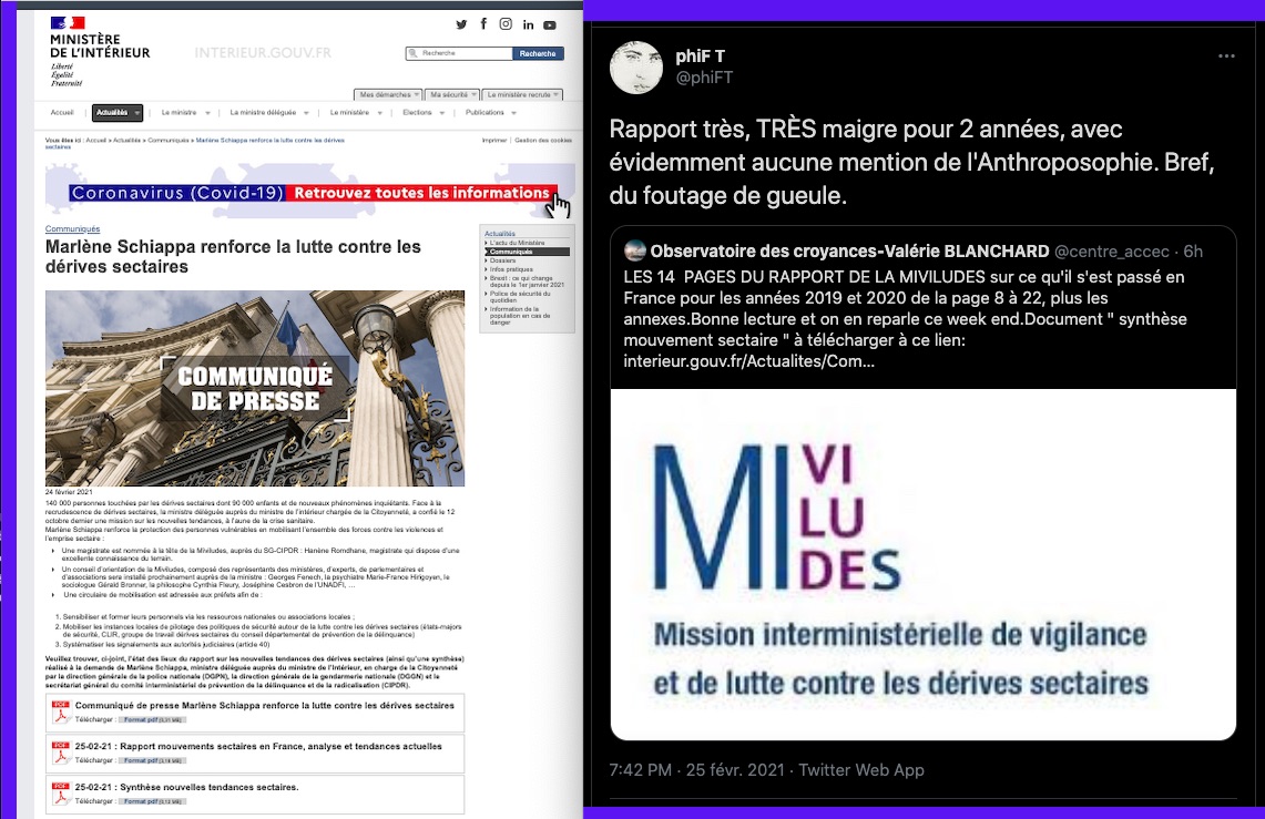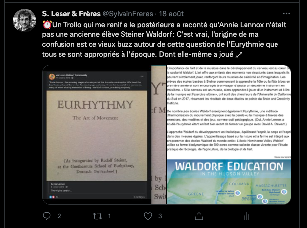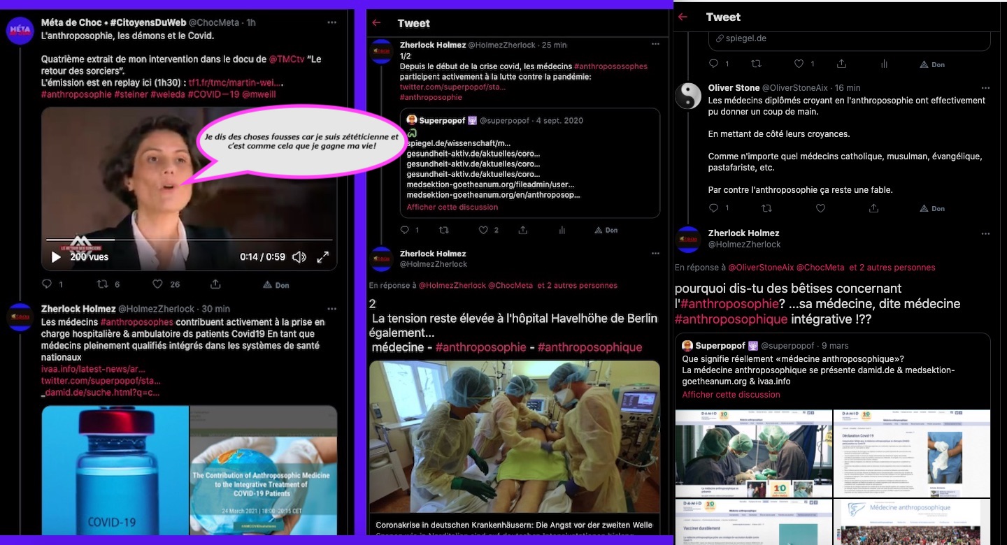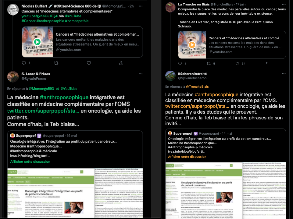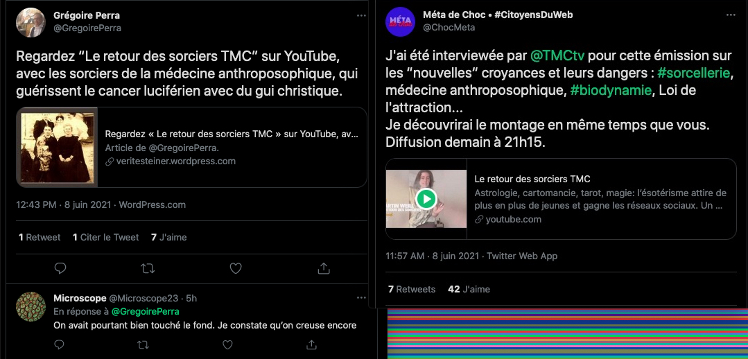 Comme vous avez pu le constater, Grégoire Perra a fait un tweet dont il est très fier ! Son truc est repris par la tribu Ze (zététichienne) …et en tête actuellement, vous avez Karine Lacombe. Ça la fout mal pour la crédibilité de cette personne, …mais les nigauds s’enfournent. Le message qu’il veut faire passer est le suivant ⬇︎. Le truc qui est à noter, c’est qu’il y a 500 retweets en gros, des retweets cités, des milliers de commentaires et c’est pas fini… Que vont faire et dire les anthroposophes? 🤣 qui je le rappelle, ne savent ou ne veulent pas se servir de Twitter… Perso, je leur conseille de creuser une tranchée autour du fameux Goetheanum, de s’entrainer au combat rapproché, de faire des provisions et de débrancher le wifi… moa, je me barre à Rio pour profiter du carnaval et je rejoins le maquis…