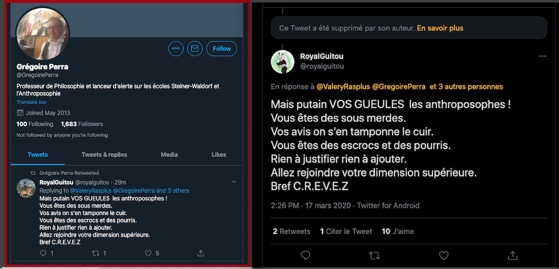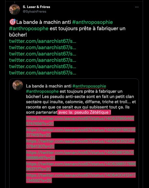 La haine encore la haine. A savoir, La zététique et GP utilisent des comptes 🚮 et des personnes instables pour insulter et diffamer les #anthroposophes, l’#anthroposophie, la #biodynamie. Pis ensuite se plaignent et jouent les victimes. #InversionDelAccusation ⬇︎