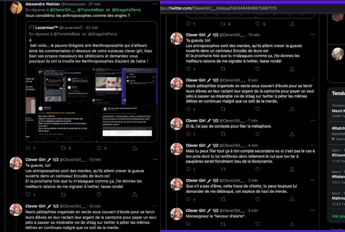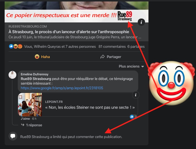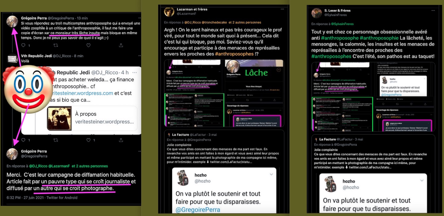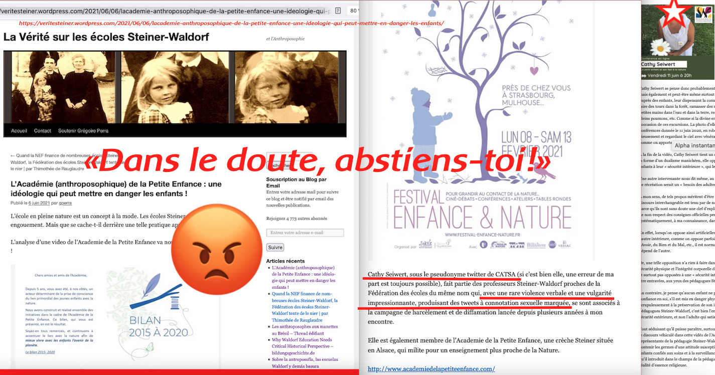 IMPORTANT: CLEVER GIRL, …GRÉGOIRE PERRA ET LA TRONCHE EN BIAIS se plaignent souvent que les anthroposophes et l’anthroposophie leur feraient la misère, insultes, diffamations, procès sans raison, etc. Des honnêtes citoyens, bienveillant comme eux , tout de même… LISEZ ⬇︎1, 2, 3, 4, 5