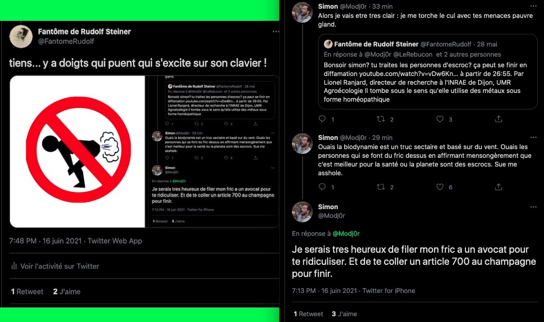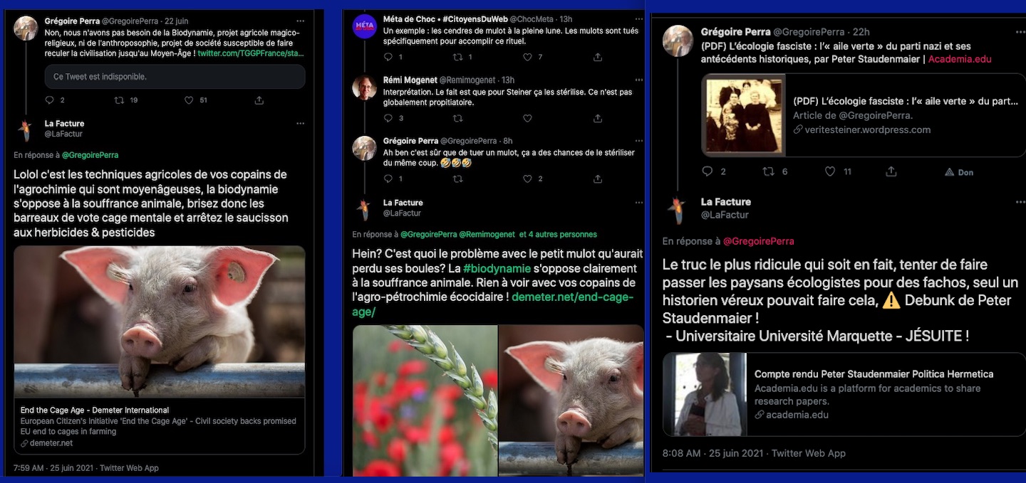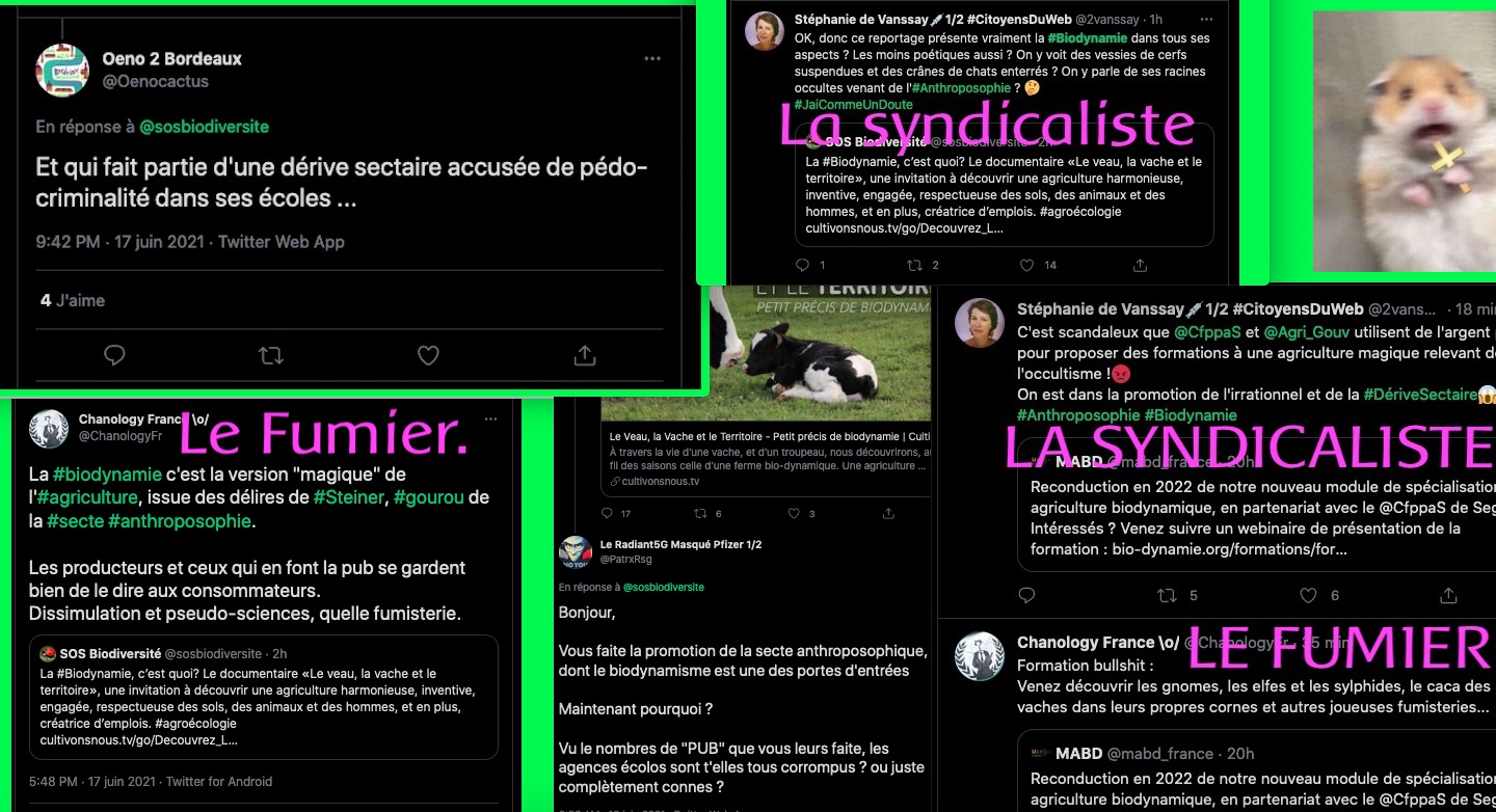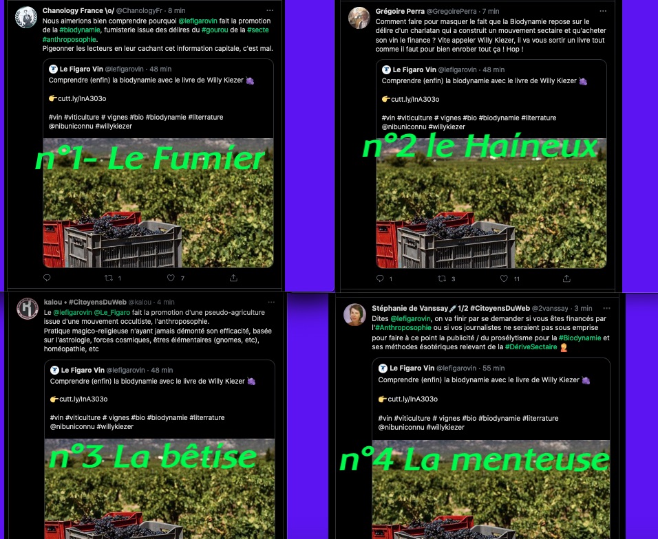 Les trollages chez les biodynamistes continuent, j’ai du faire cent tweets depuis ce matin, avec quelques perles collectées ⤸ en voici une dizaine: