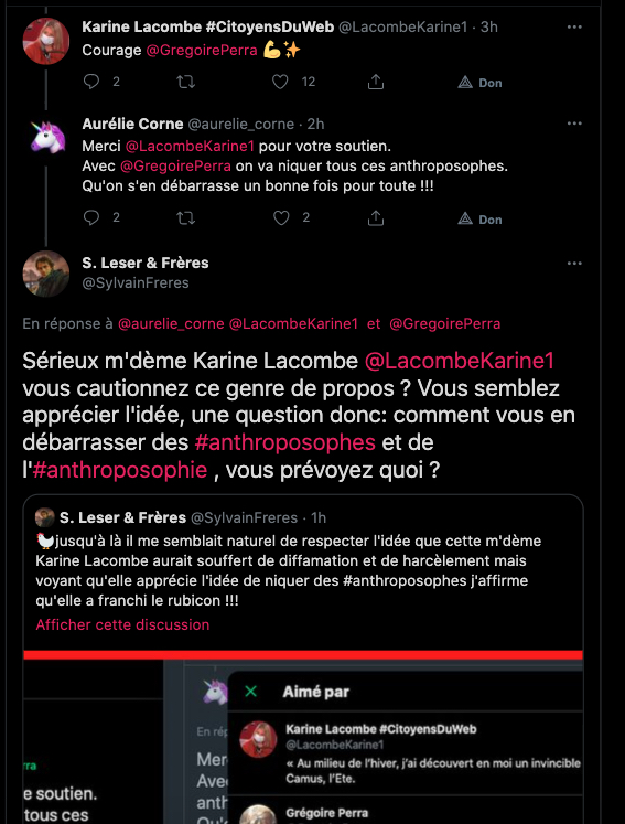 –🐓Jusqu’à là, il me semblait naturel de respecter l’idée que cette m’dème Karine Lacombe aurait souffert de diffamation et de harcèlement mais voyant qu’elle apprécie l’idée de niquer des #anthroposophes, j’affirme qu’elle a elle aussi franchi le rubicon !!!