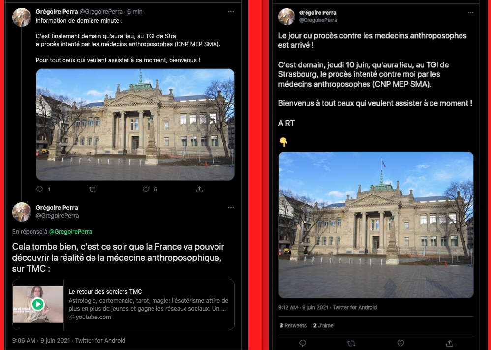 🍗Strasbourg🍗: les Moldus VS les Glandus ! Avec GP, c’est presque du direct la Justice ! Je ne veux pas être défaitiste mais il y a un fort risque qu’il gagne? Je dis cela après avoir longuement observé la partie visible de la façon médiatique de se défendre des anthroposophes. Je mets un hotdog🌭 sur le bourricot… ⬇︎