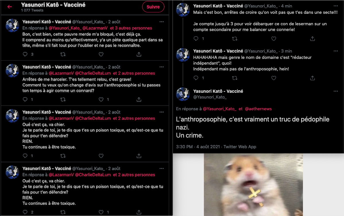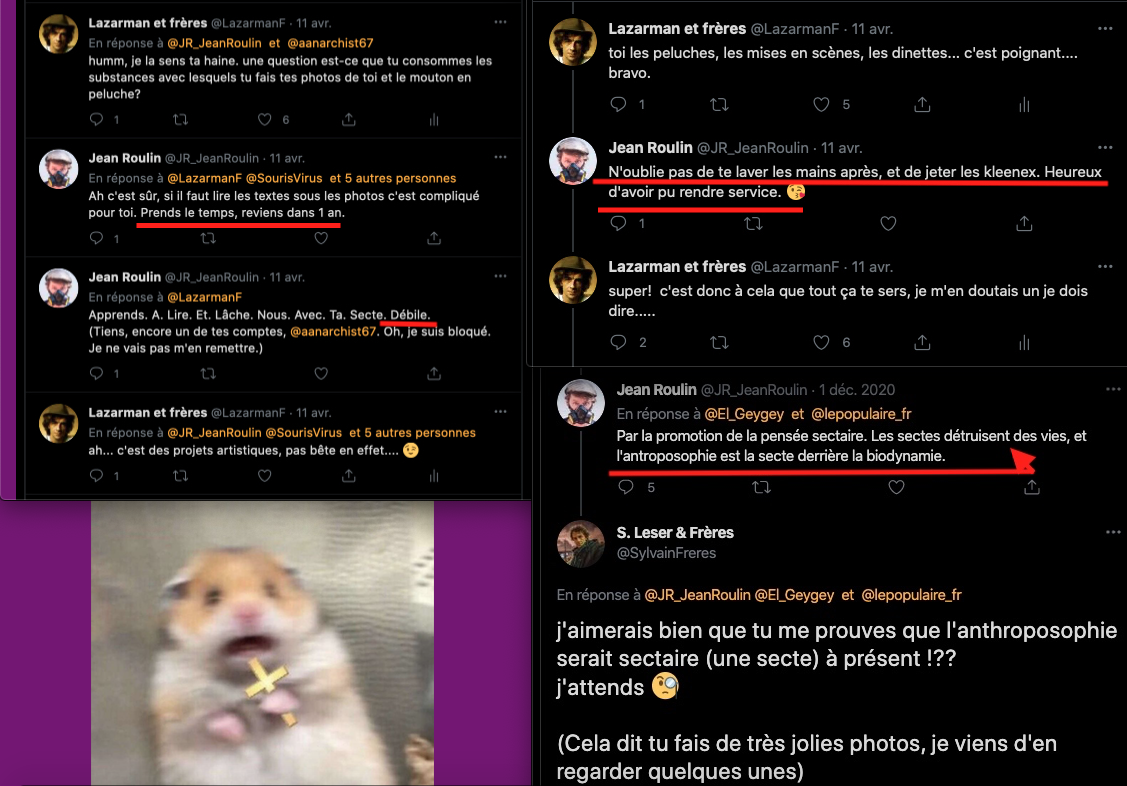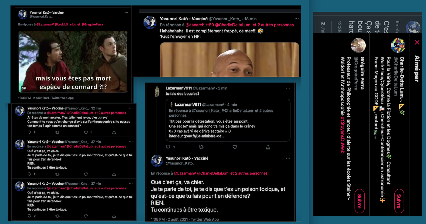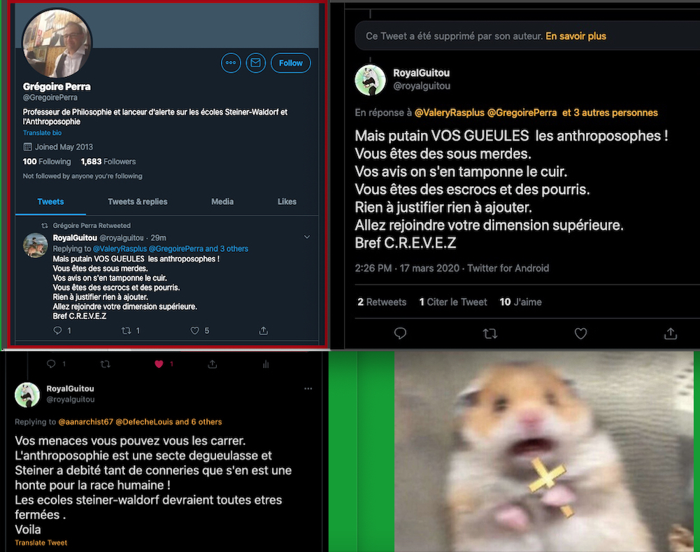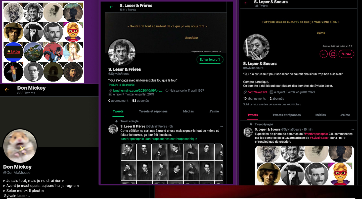 les comptes d’attaques, qui servent à harceler et agresser – Exposition de photo de comptes de l’#anthroposophie 2.0, commencons par les comptes de la LazarmanTeam de #SylvainLeser, dans l’odre chronologique de création.