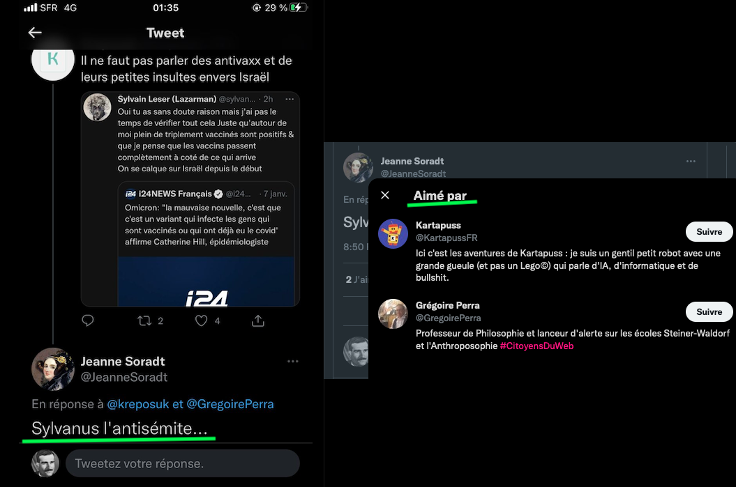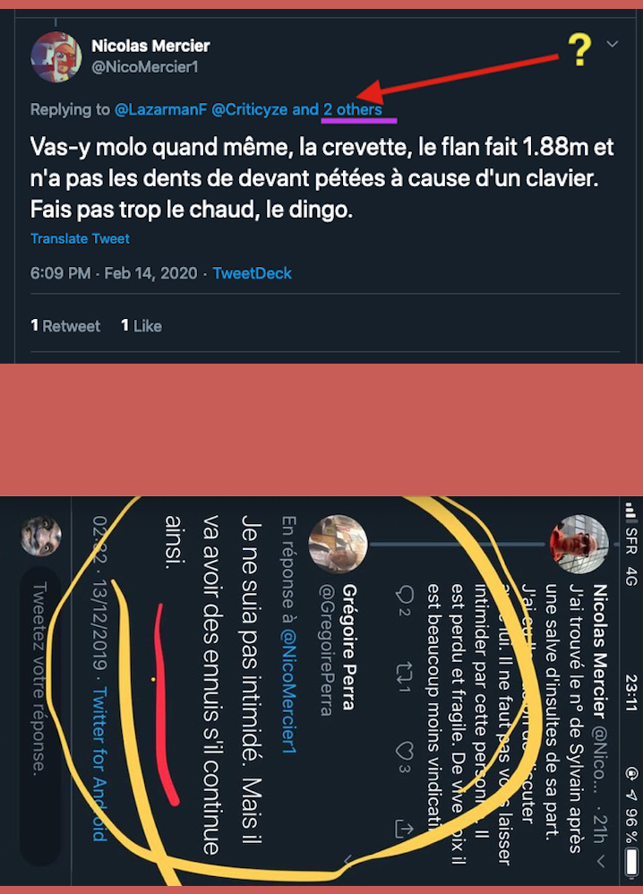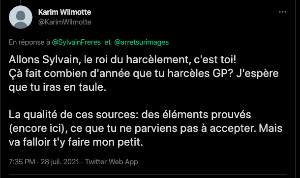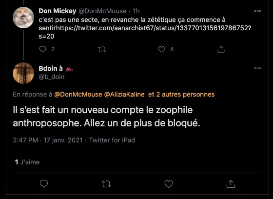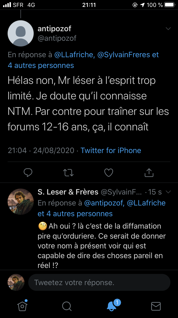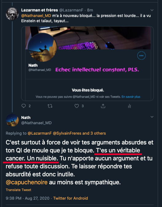 Cela fait des mois que j’observe leurs attitudes sauce Facho/Collabo/Vichy. des listes. de la dénonciation. ils inversent et accusent de ce qu’ils sont et certains font du révisionnisme. alors en plus du bashing et du mobbing: ils sont répugnants & rongés : https://twitter.com/ArchibaldMcEnd/status/1299672571273674752/photo/1 & https://twitter.com/ArchibaldMcEnd/status/1302000561991098368?s=20 & https://twitter.com/ArchibaldMcEnd/status/1302000561991098368?s=20 & https://twitter.com/ArchibaldMcEnd/status/1302000561991098368/photo/1 & https://twitter.com/ArchibaldMcEnd/status/1302000561991098368/photo/2 & https://twitter.com/ArchibaldMcEnd/status/1302000561991098368/photo/3 & dur dur les gars : https://twitter.com/ArchibaldMcEnd/status/1302000561991098368/photo/4 … Lire ici : https://lamehumaine.com/2021/04/21/bionazi-la-suite/ – https://twitter.com/ArchibaldMcEnd/status/1302000561991098368?s=20 -Chanolopopo insulte comme c’est pas permis : https://twitter.com/SylvainBucheron/status/1397545803284197377?s=20 & il fait dans la biodynamie aussi : https://twitter.com/SylvainBucheron/status/1398660138840506375?s=20 – J’en ai des tonnes sur lui. Le harcèlement envers Alexandre mérite un rappel à la loi : https://twitter.com/SylvainFreres/status/1419679613849067522?s=20 & https://twitter.com/SylvainFreres/status/1419679613849067522/photo/2