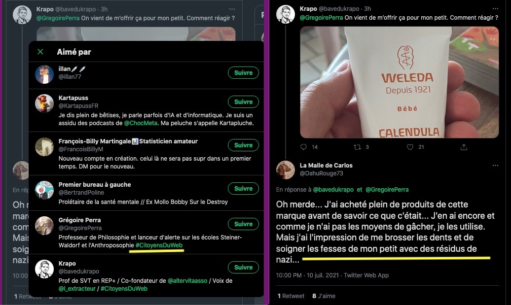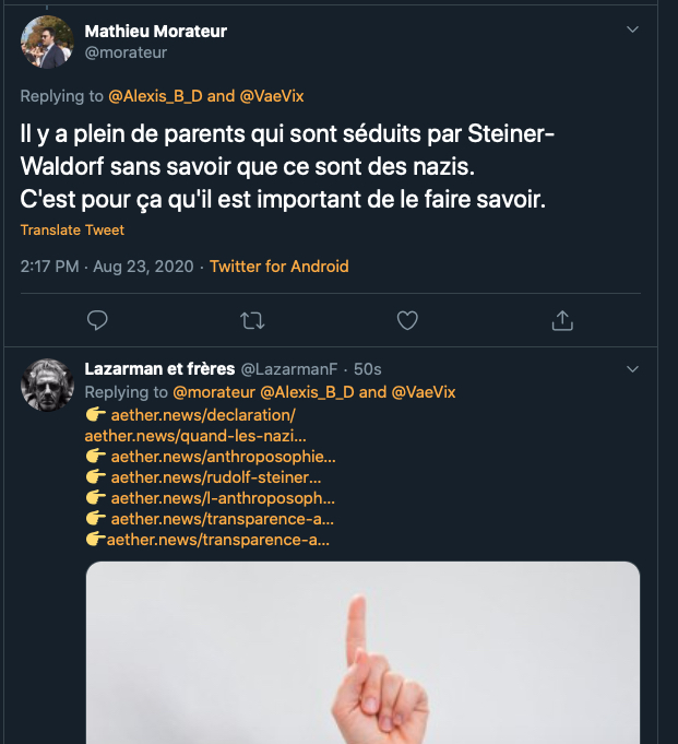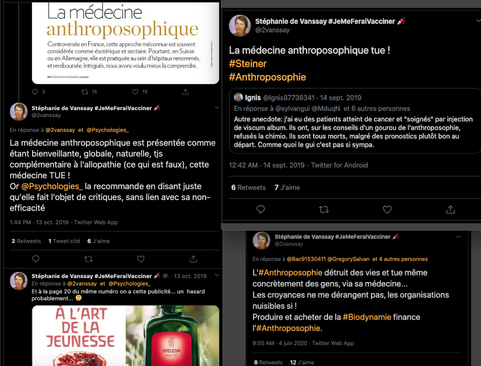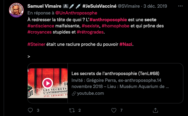 Si je suis tendu et réactif sur ce sujet c’est à force de voir des choses comme celles-ci ⬇︎que les types en face aiment et encouragent ⤦ C’EST PAS JOLI, JOLI. Les anthroposophes s’en sont pris une véritable salve en août dernier : https://www.aether.news/chasse-aux-sorcieres-et-inquisition-2-0/ ….