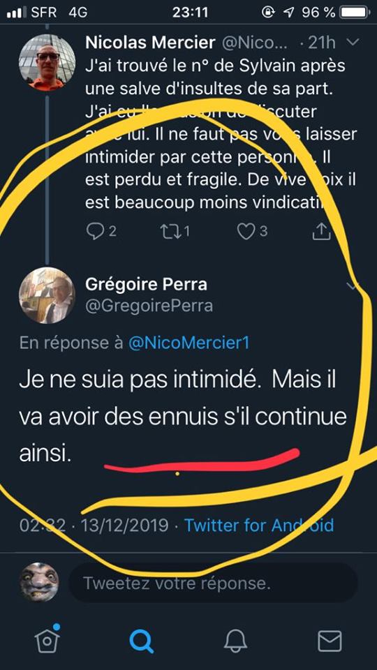 Mercier voulait aussi venir chez moi m’expliquer la vie… Il a mis mon adresse et mon téléphone sur internet .