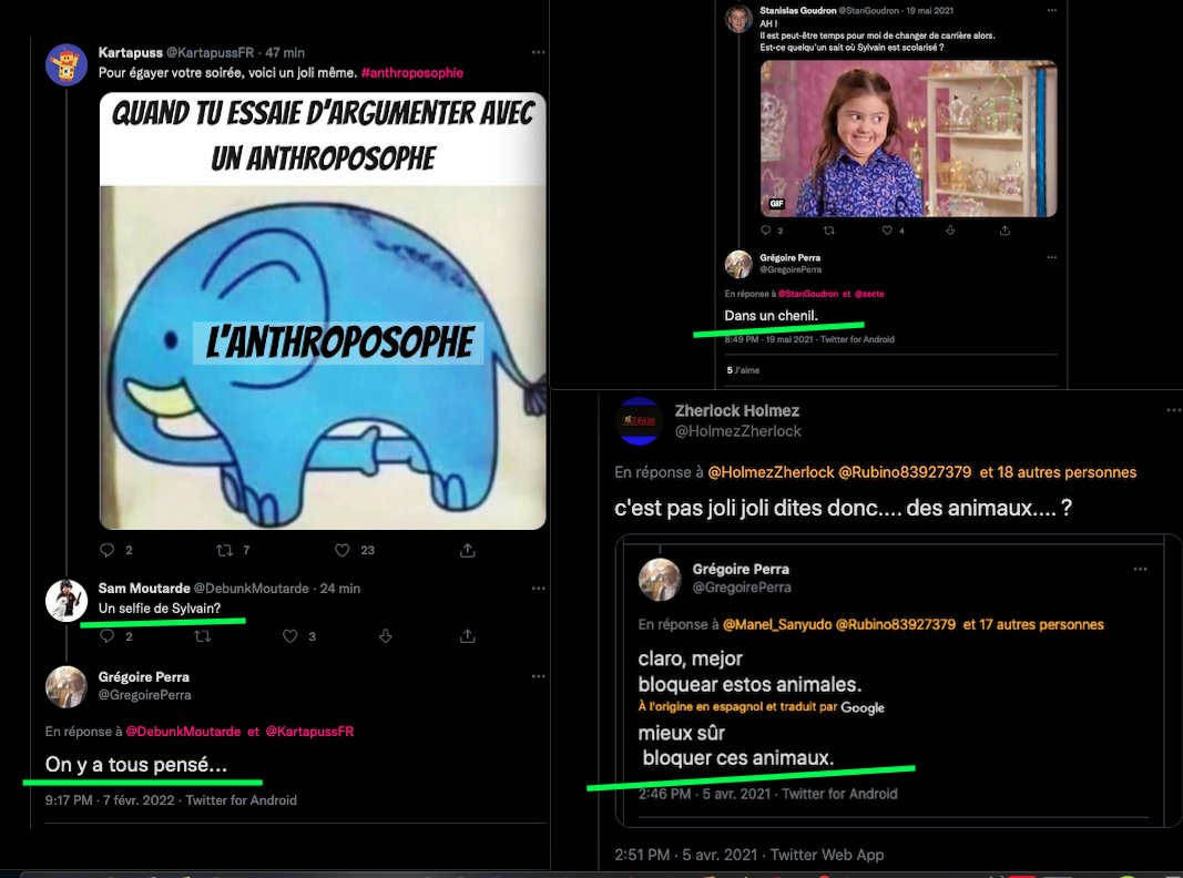 La copine folle-dingue de machin… l’anti anthroposophes, anthroposophie, biodynamie, GP le n°1 mondial… Sans doute sa favorite. Son rêve… https://twitter.com/SylvainFreres/status/1501536932572110854?s=20&t=NLx-4QoLuPMWtFfwHc7a2w Rappel : https://twitter.com/ZGorgone/status/1427180621944791045/photo/2 etc.etc. Il a supprimé son Tweet (mais je dois l’avoir aux archives) … Cela dit, ce type est un p’tit bouffon tout minable de me faire passer pour un antisémite, le serait-il lui même!??? C’est son rêve qui le dit, il aime. https://twitter.com/SylvainFreres/status/1501541048534933507?s=20&t=NLx-4QoLuPMWtFfwHc7a2w & https://twitter.com/ZGorgone/status/1427180621944791045/photo/2 & Natacha qu’est dans une sale secte, rappel : https://twitter.com/SylvainFreres/status/1501541613000359948?s=20&t=NLx-4QoLuPMWtFfwHc7a2w lolol Natacha 1/3 https://twitter.com/SingeGluant/status/1501545426704551942?s=20&t=b6mwB3wBySuapkj_ZaMr_A C’est bo l’espoir 1/3 déroule bien tout, le niveau de la zététique et des amis de la bande à machin tout de même… https://twitter.com/SingeGluant/status/1501547640009461764?s=20&t=Nf4LObSmqh__odWOAJYmmw – Elle est belle la garde rapprochée du hater de l’anthroposophie, des anthroposophes et de la biodynamie… Mini Thread 1/3 https://twitter.com/SylvainFreres/status/1501548463498137602?s=20&t=NLx-4QoLuPMWtFfwHc7a2w