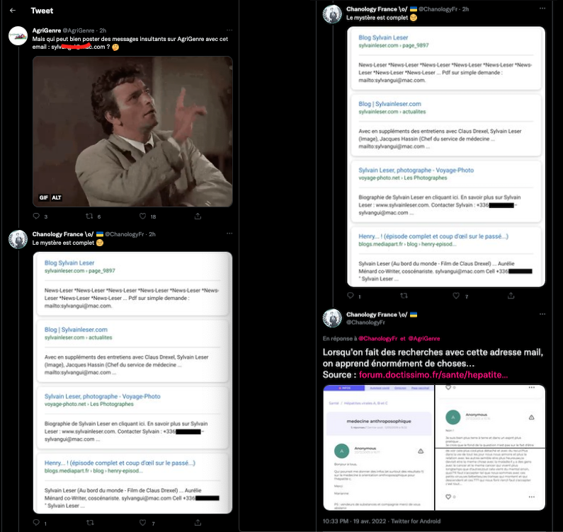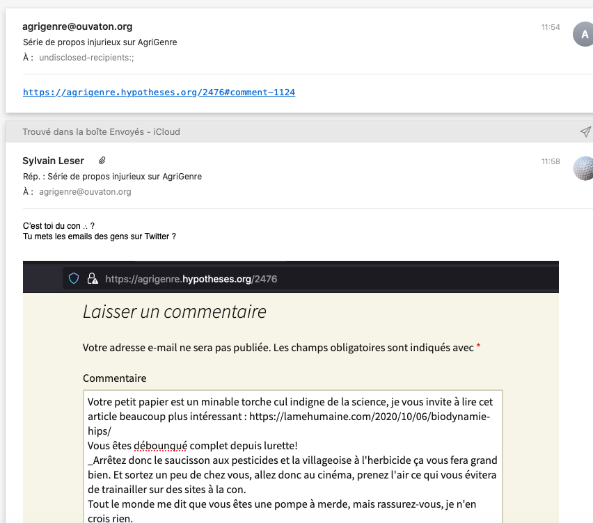 Diffusion d’adresse email sur le rĂ©seau, menaces rĂ©pĂ©titives gravissimes, Ă©pluchage sauce doxxing, harcĂšlement en meute. Aimer vouloir balancer les gens sous un train, c’est ce que GP l’anti antroposophes anthroposophie , biodynamie fait rĂ©guliĂšrement.. https://twitter.com/LaFactur/status/1516820515746418694?s=20&t=ts_YQMIvU2Rk49oOSOpIGg