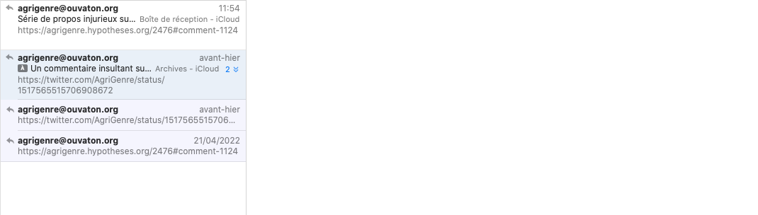 _ 4 fois, Ă prĂ©sent 15 fois et plus, que le compte agrigenre@ducon.org de ValĂ©ry Rasplus (Vđđ€+âŽ), qui trafique les commentaires, m’envoie le mĂȘme email. OĂč il a bidouillĂ© mon commentaire, dont l’original est ci-dessous âŁSPAM
