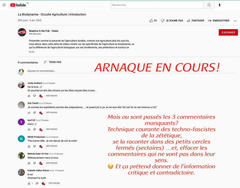 Ils mentent, ils savent qu’on sait qu’ils mentent mais ils continuent de mentir. Les anti anthroposophes, anthroposophie, biodynamie sont des menteurs. Ils harcĂšlent en permanence et se positionnent en victimes. Et ils font des menaces gravissimes ! https://twitter.com/SylvainFreres/status/1517250002913046530?s=20&t=F0vyO7vmwhRDs9lUY43b6Q