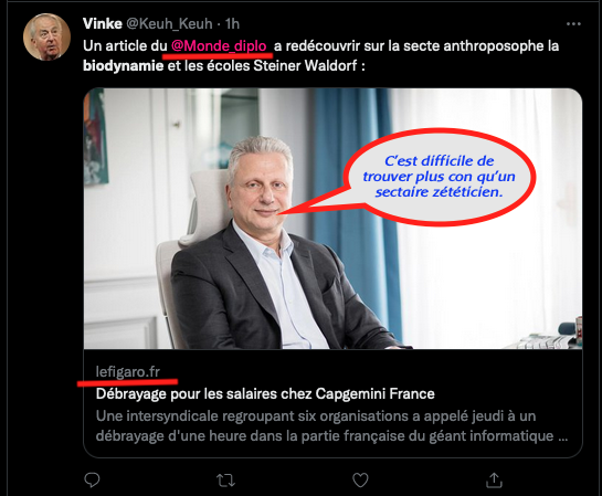 _ La zĂ©tĂ©tique qui encense ce type activiste anti biodynamie est sectaire. La zĂ©tĂ©tique, est anti biodynamie, et ne dit jamais rien contre l’agro-pĂ©trochimie polluante, pourquoi? L’anti sectarisme serait-il Ă la solde des cartels industriels? https://twitter.com/ZGorgone/status/1518193824182513664?s=20&t=AYirtF4r2T2VZJlhhtgy1A & Des personnes fabuleuses ces pseudo-anti-sectes… https://twitter.com/ZGorgone/status/1518205844365754369?s=20&t=ICgJ6TTt0ehokhkFKrH4UQ & Tu discutes avec les amis de la Miviludes on dirait. Ils n’aiment pas beaucoup l’anthroposophie. https://twitter.com/ZGorgone/status/1518205525686730753?s=20&t=ICgJ6TTt0ehokhkFKrH4UQ